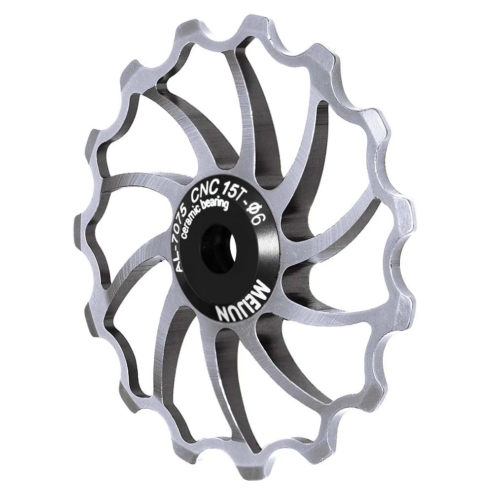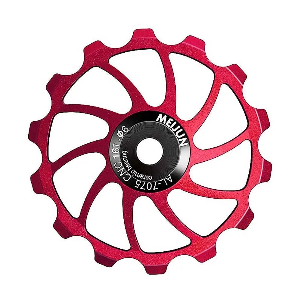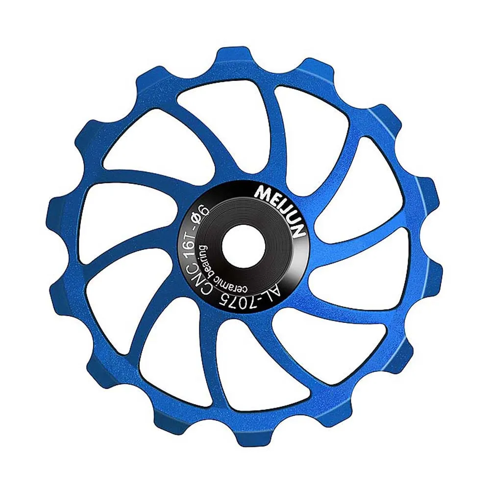 Item type: Bike Rear Derailleur Pulley Material: aluminium alloy Color: As Picture Optional type: 14T 15T 16T Specification: applicable to 4/5/6MM shaft guide screw Package Contents: 1 pcs Bike Rear Derailleur Pulley Size: 14T diameter is about 55mm, 15T diameter is about 57mm,16T diameter is about 63mm