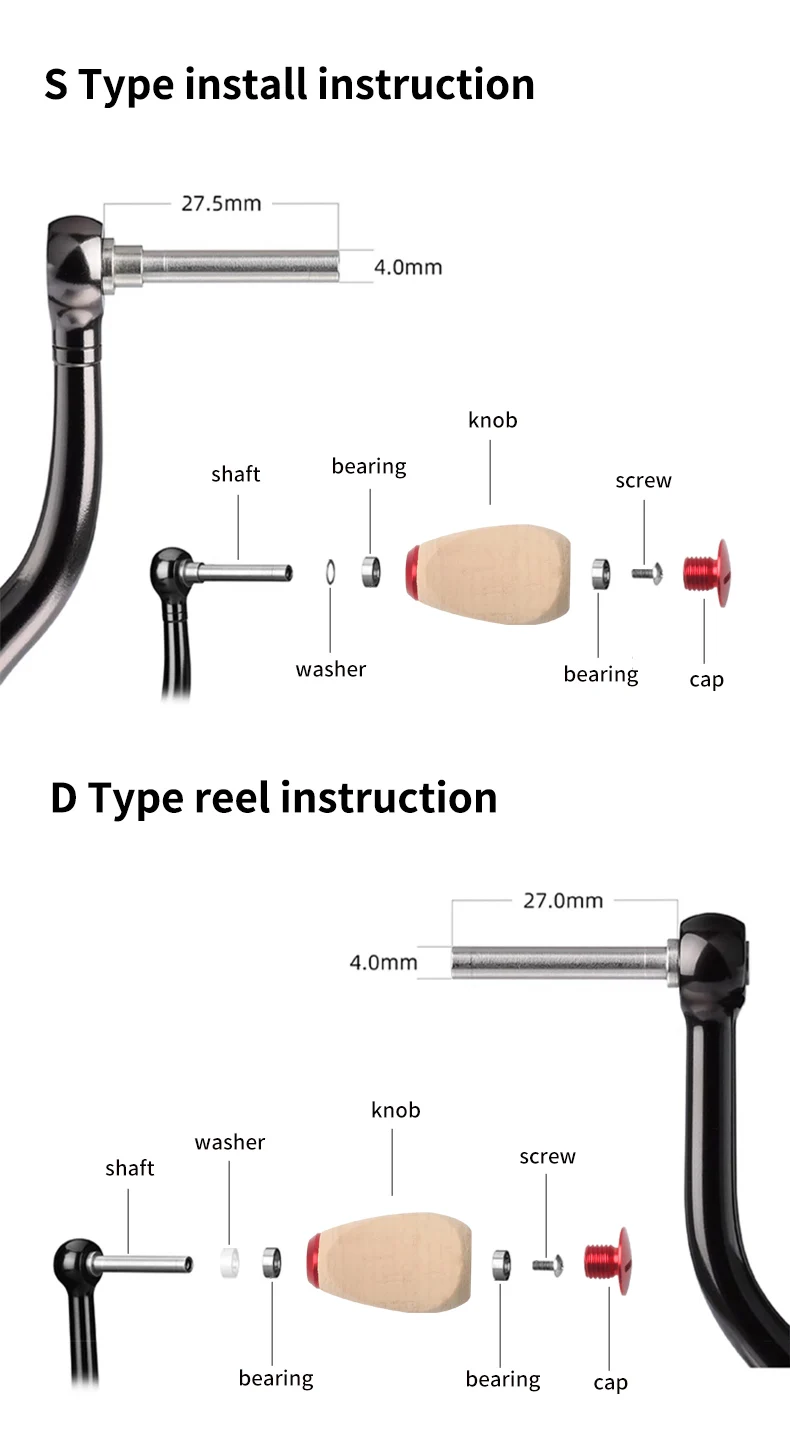 Embalaje: 1 perilla + 2 rodamientos + 4 arandelas.