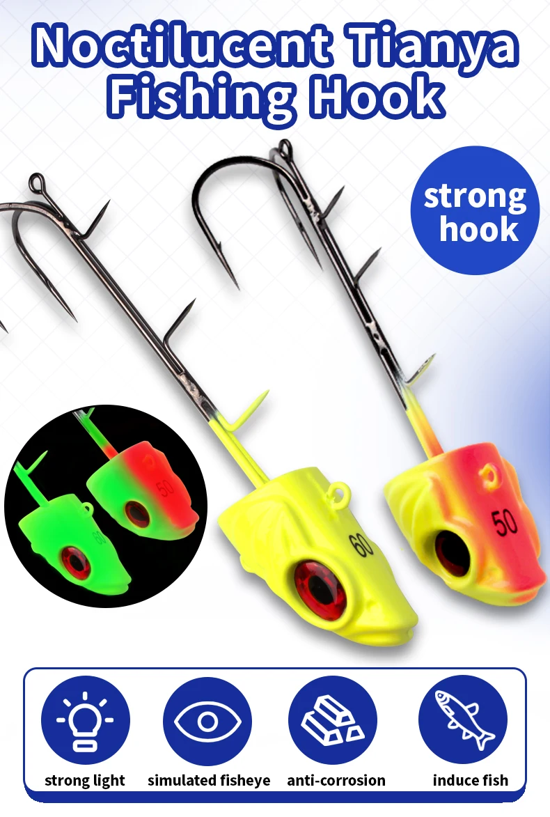 Ruke-anzuelos de pesca Tianya con ojo brillante, anzuelo triple de 150/190/225g, acero rico en carbono para agua dulce y salada, 1 ud.