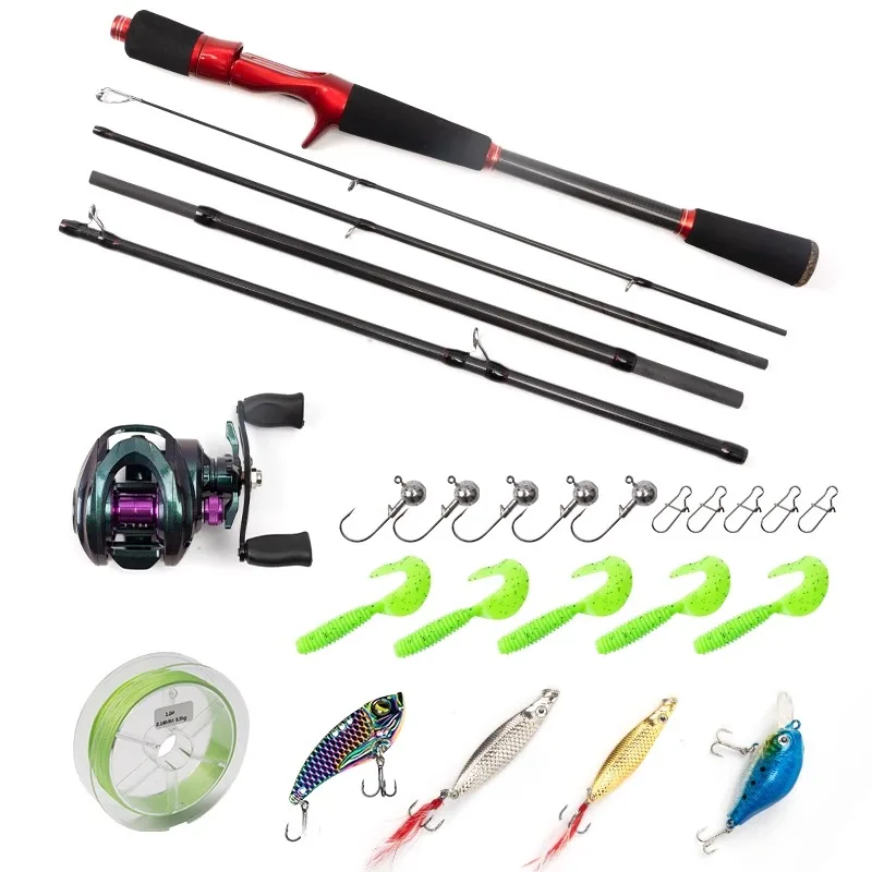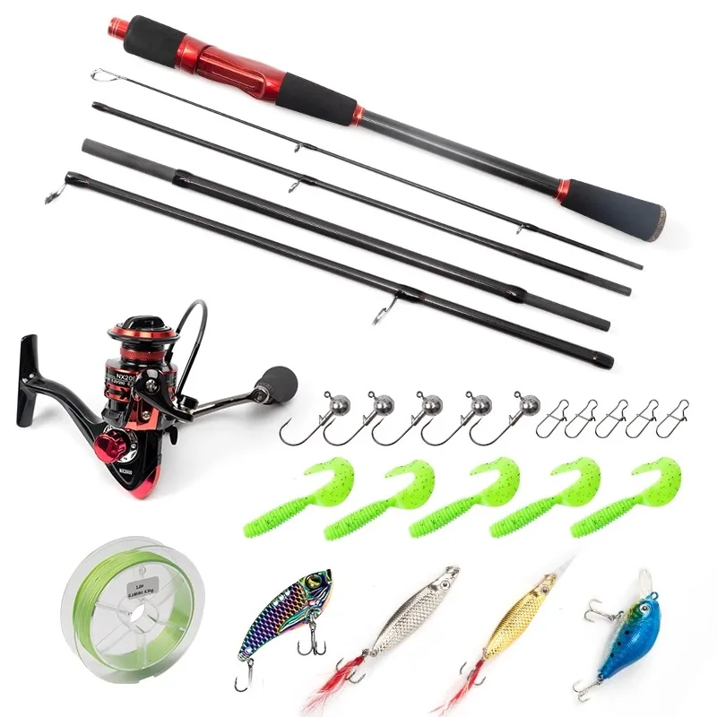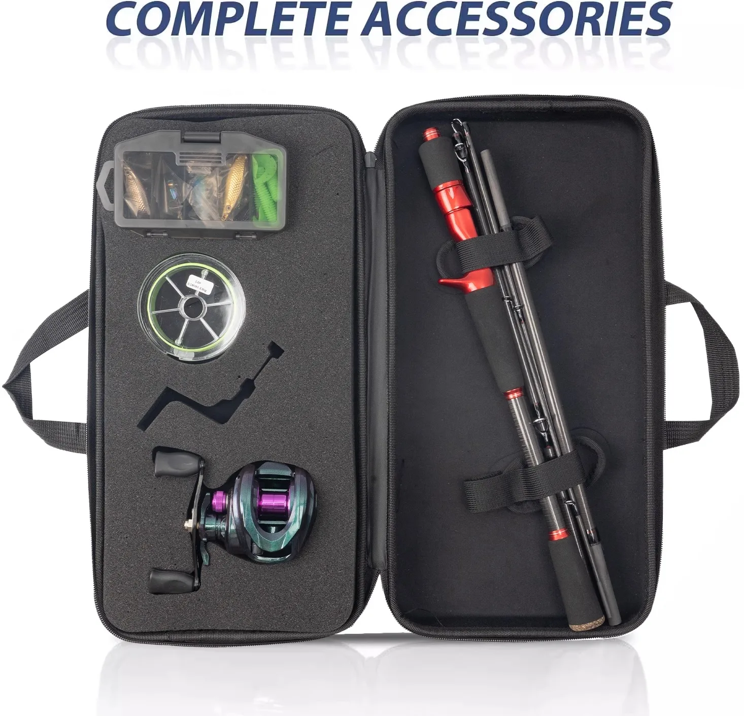 RUKE-caña de pescar de carbono, 5 secciones, medio duro, acción rápida, 1,8 m de longitud retráctil, 44cm, 124g con caja portátil, anillo coreano, mango EVA