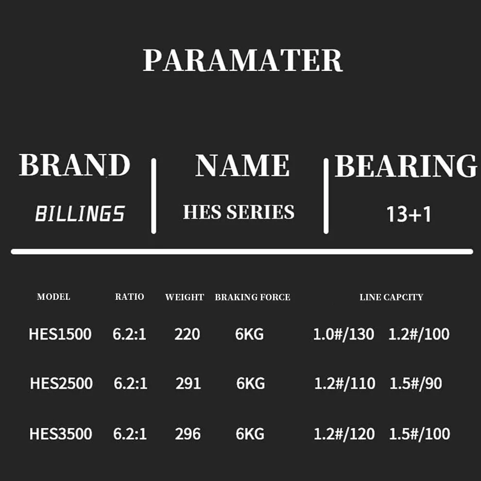 HES2500 291g capacidad de la línea: 1,2 #/110m 1,5 #/90m
