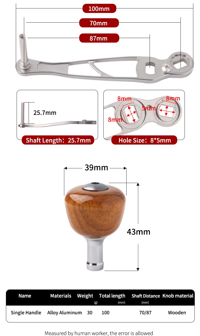 Ruke-mango de carrete de pesca, balancín doble con perilla de madera de 100mm de longitud, agujero de 7x4/8x5mm, traje D/S/A, accesorio DIY, 1 ud.