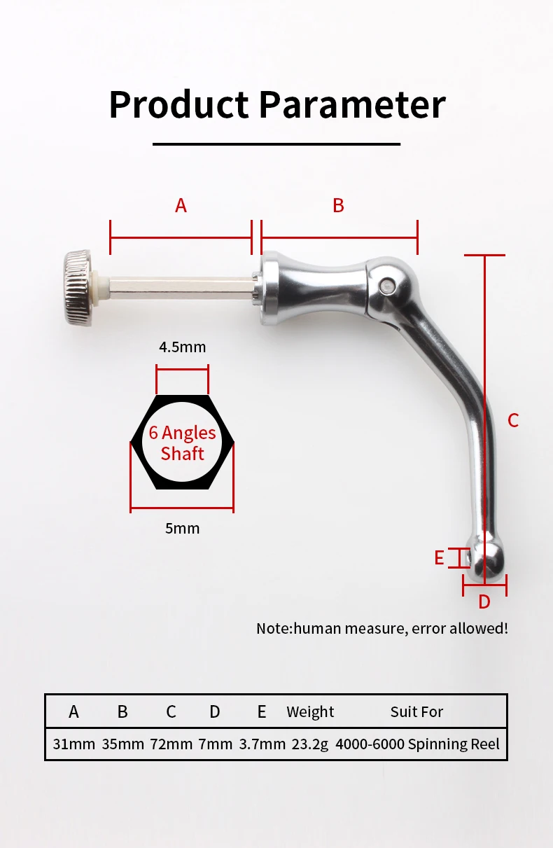 RUKE mango de carrete de pesca CNC traje hexagonal de aleación de aluminio para carrete giratorio tipo D perilla de instalación de accesorio DIY de rotación completa
