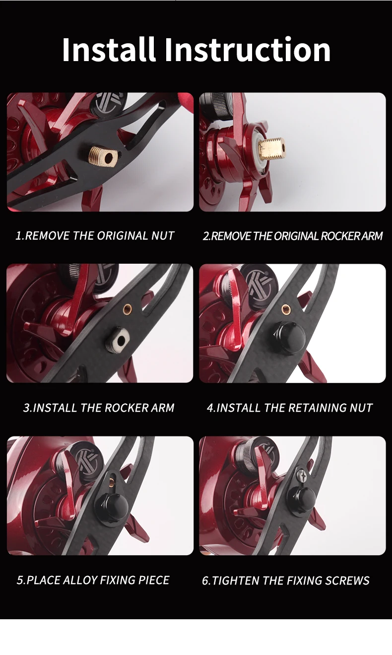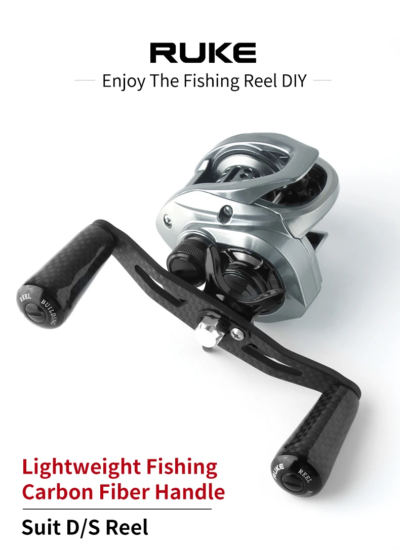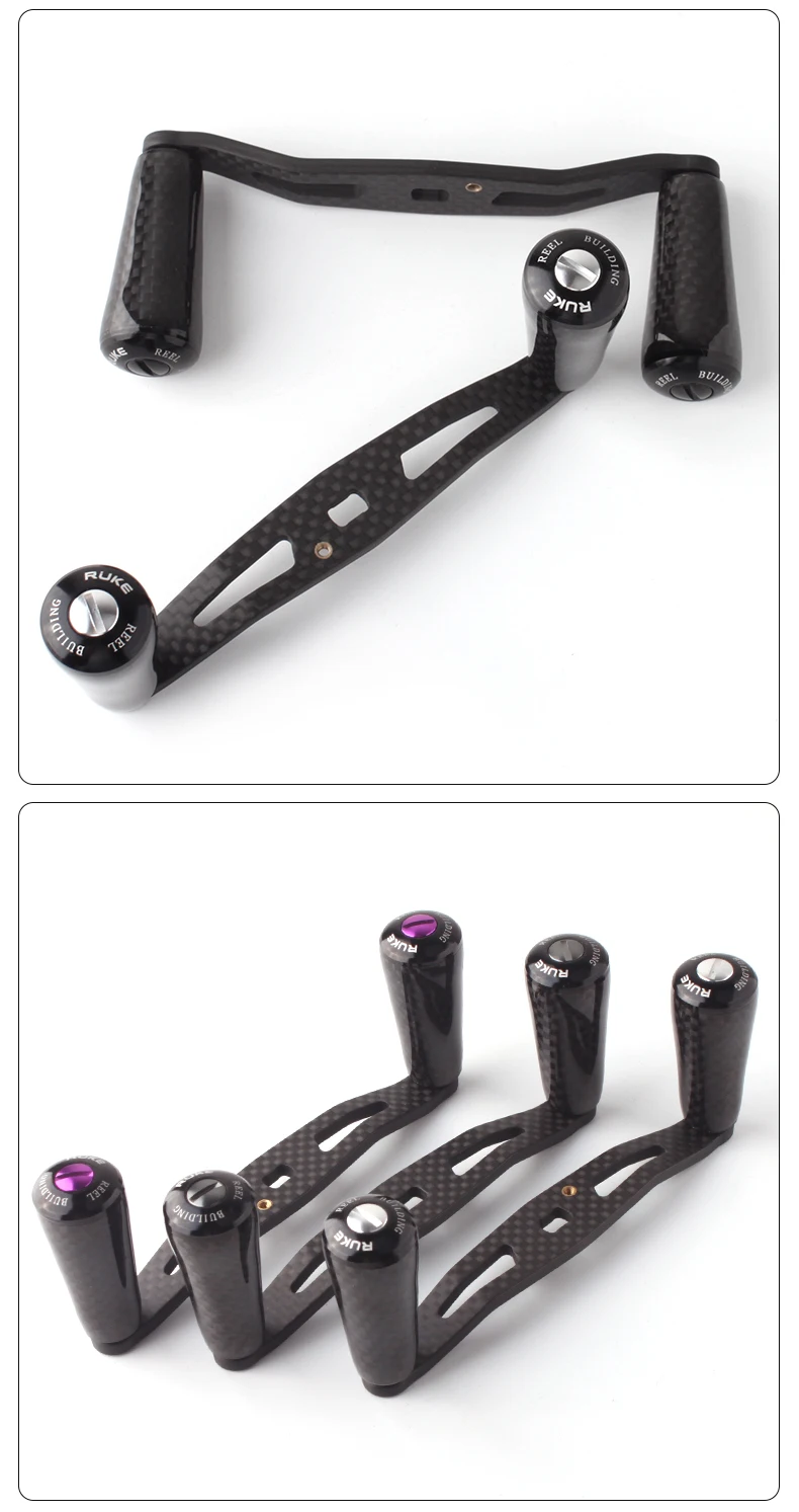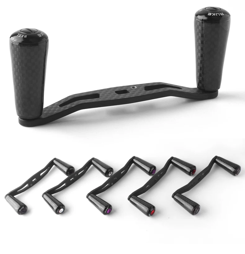 RUKE-mango de carrete de pesca de fibra de carbono, balancín DIY para ruedas de fundición, mango de carbono, tamaño de agujero de 8x5/7x4mm, accesorio de carrete de pesca, 1 ud.
