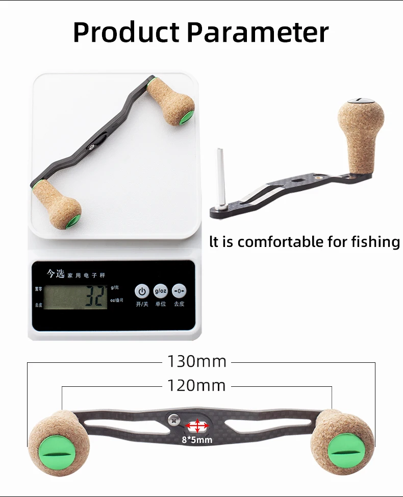Ruke-mango de carrete de pesca de fibra de carbono con orificio de perilla de corcho de goma, 8x5, para tipo A/D, longitud de 130mm, accesorio basculante, 1 ud.