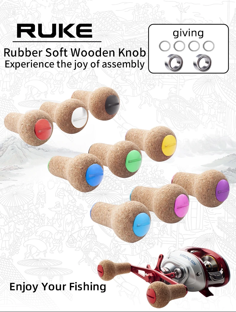 Ruke nuevo 1 pieza de mango de carrete de pesca, perilla de goma de madera suave, peso 11g para rodamientos de 7*4*2,5mm, traje tipo Shi/Dai, accesorio DIY