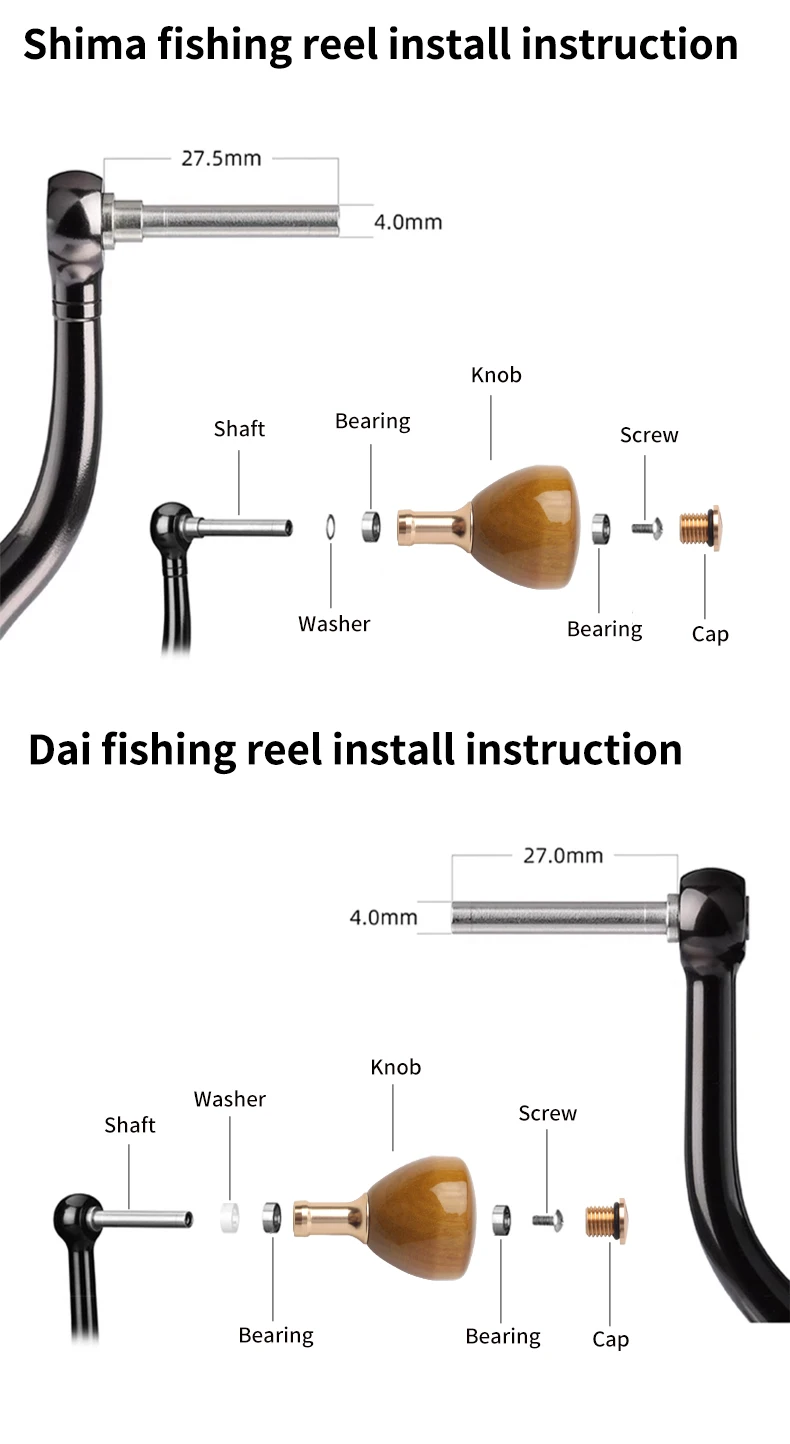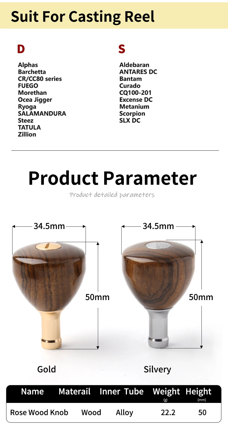 Ruke, nuevo mango de carrete de pesca, perilla de madera para accesorio de carrete Dai/Shima, materiales de cizalla Phoebe para carrete de fundición y Spinning S/D