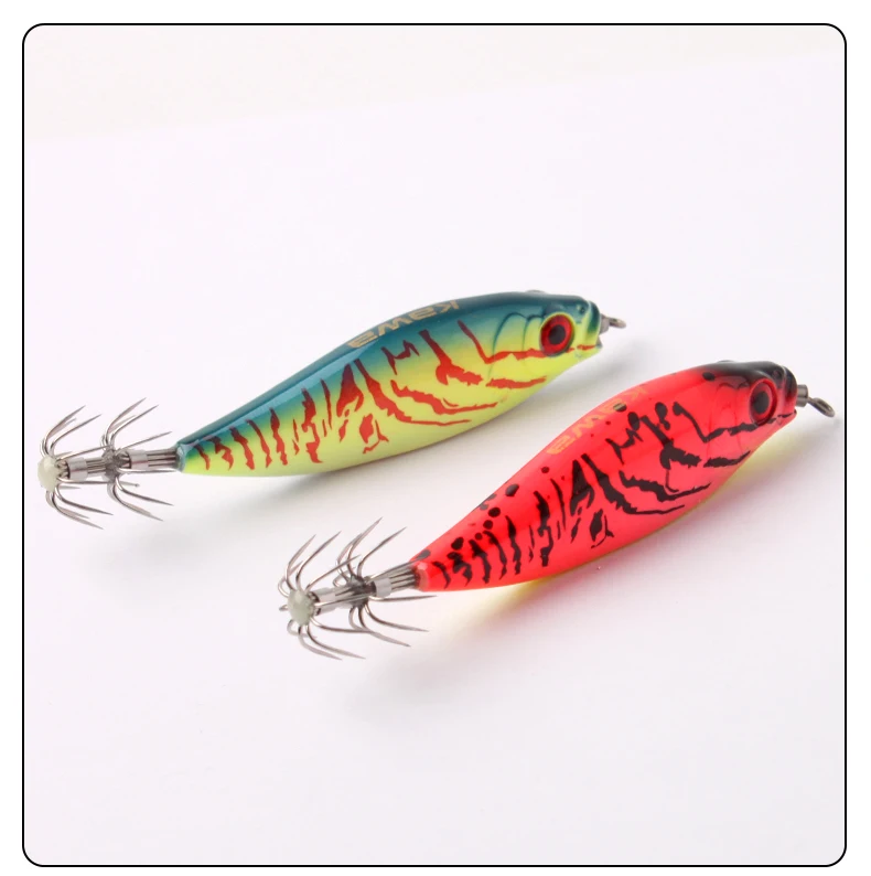 RUKE-señuelo de madera para pesca de camarones, anzuelos de calamar, 4/5, 5g, 50/55mm, revestimiento UV, pulpo, sepia, camarones, Jigging, 1 ud.