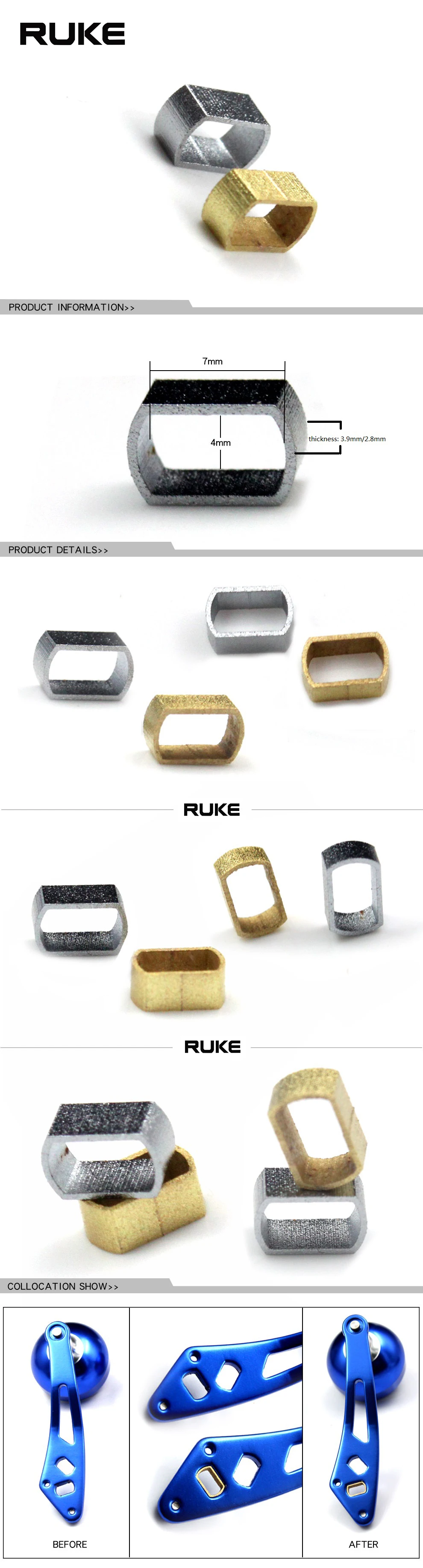 Ruke tubo de mango de carrete de pesca para montaje, orificio que puede cambiar el orificio de 8x5mm A 7x4mm, accesorio de pesca tipo D/A, 1 unidad