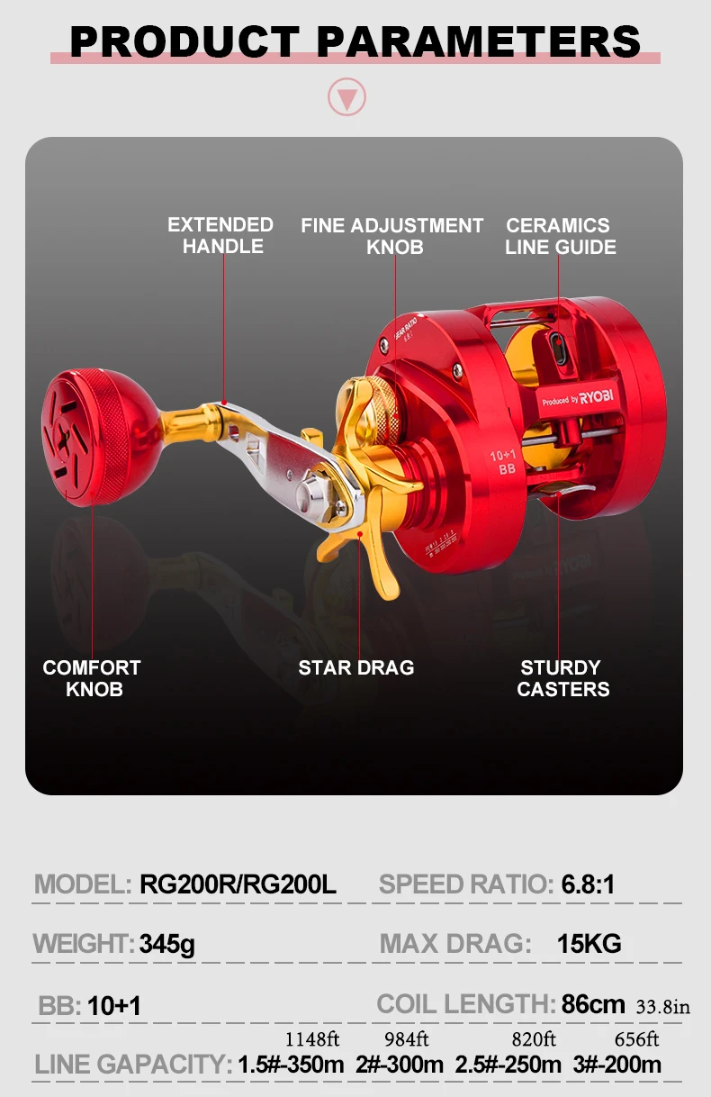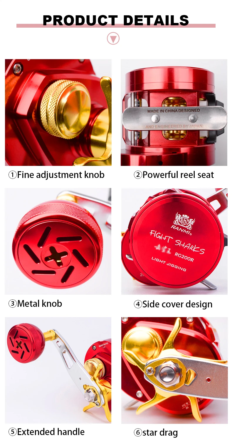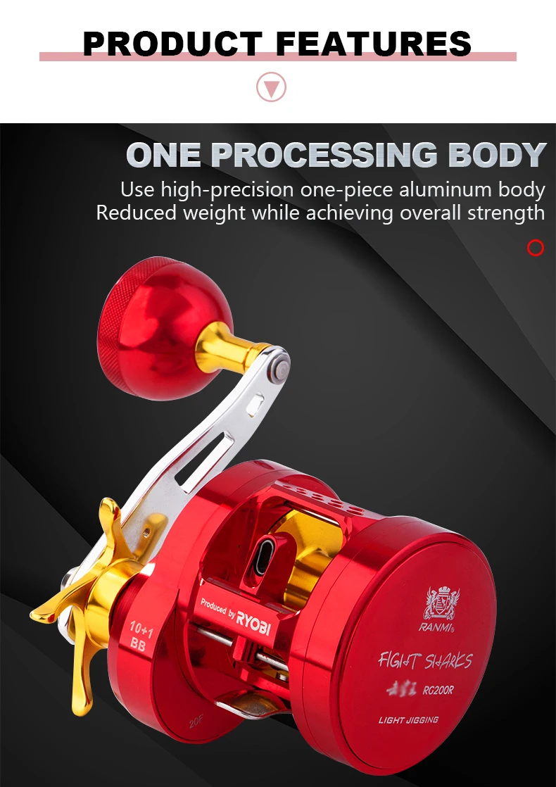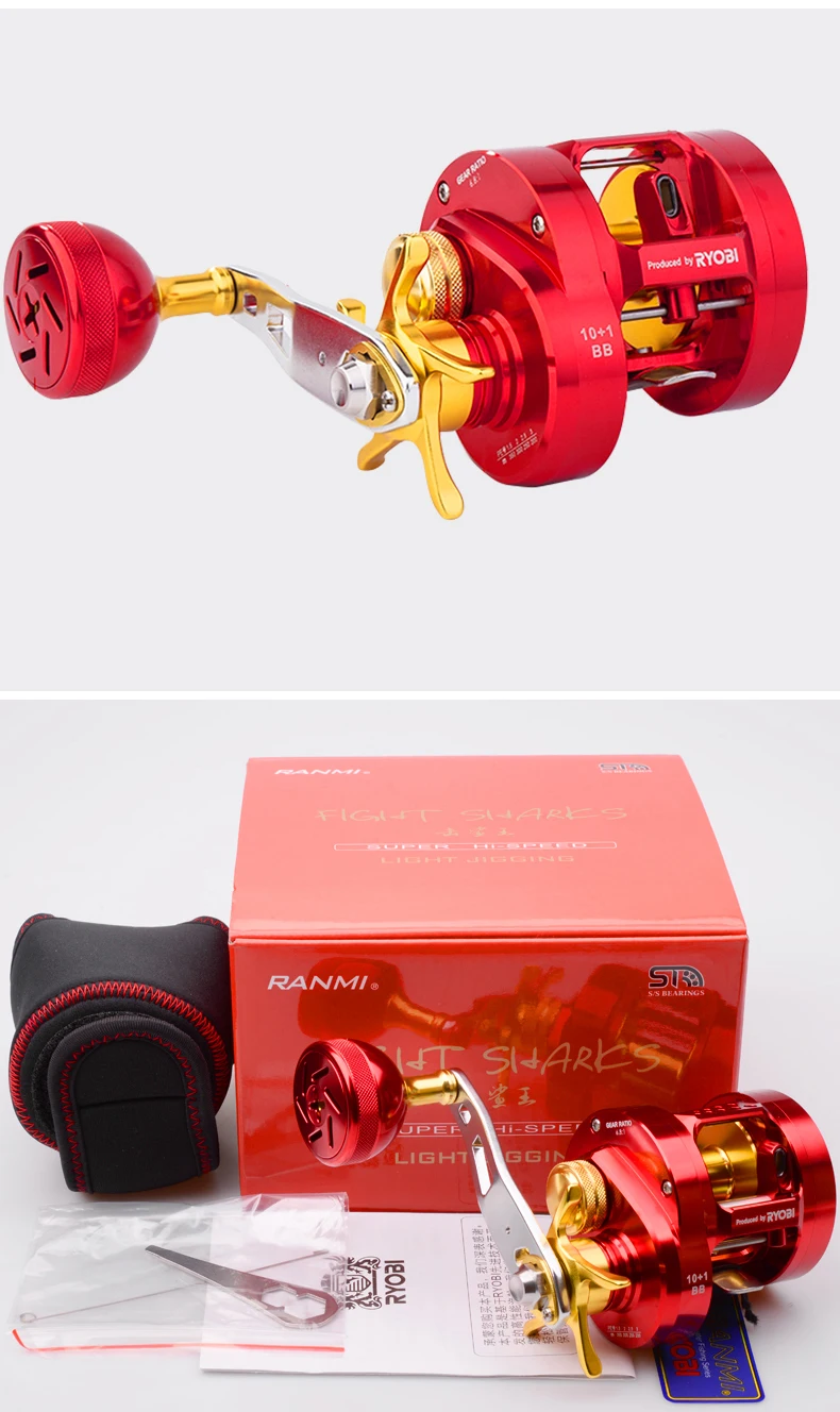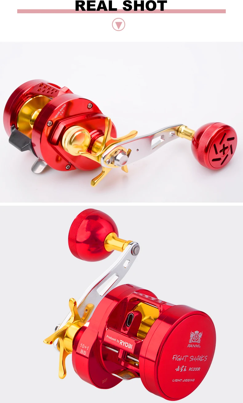 RYOBI RANMI FIGHT SHARKS carretes de pesca de Jigging lento 10 + 1 BB relación de engranaje 6,8:1 arrastre máximo 15kg todas las ruedas de agua salada de Metal