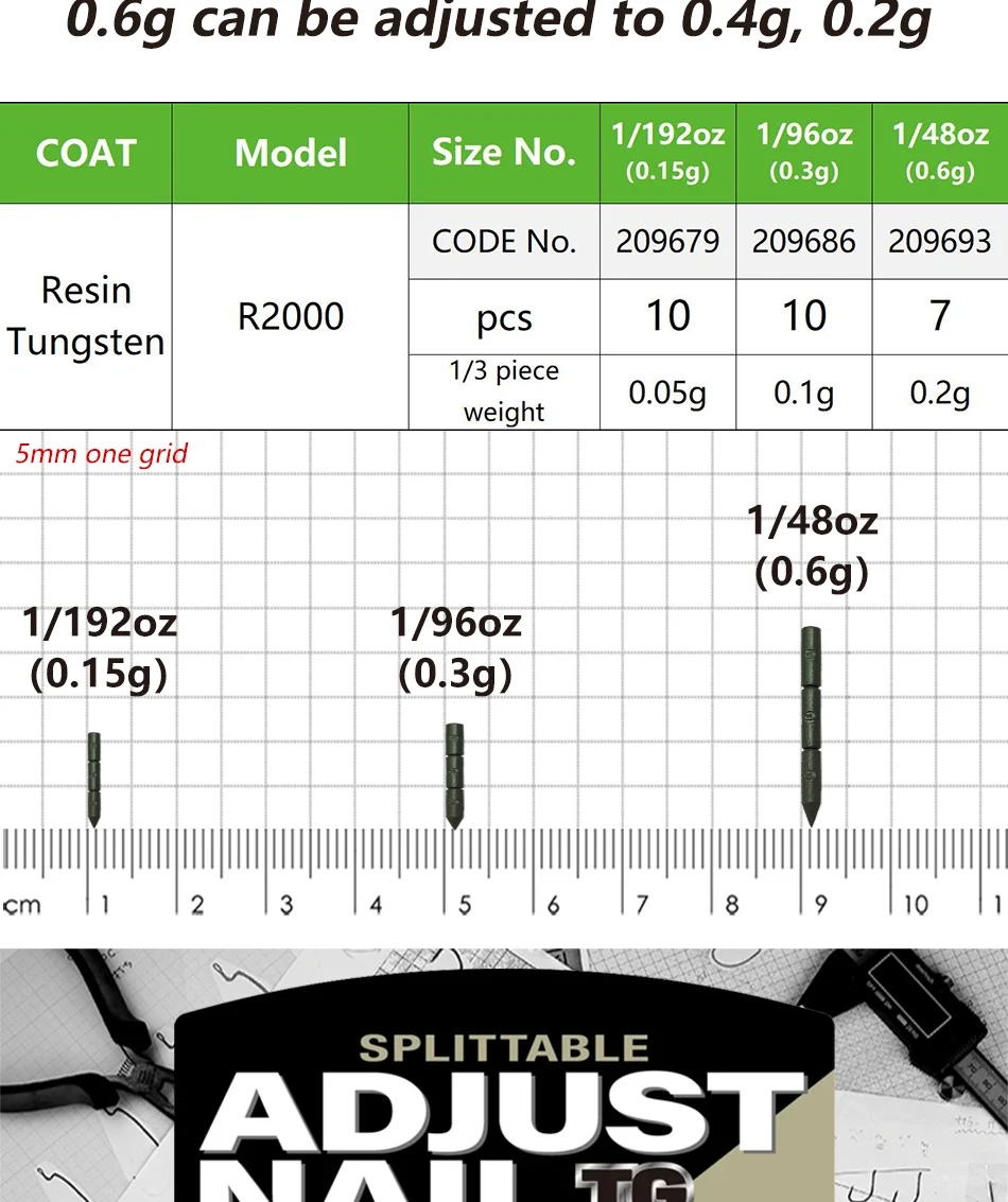 1/192oz, 1/96oz, 1/48oz, tres pesos diferentes.