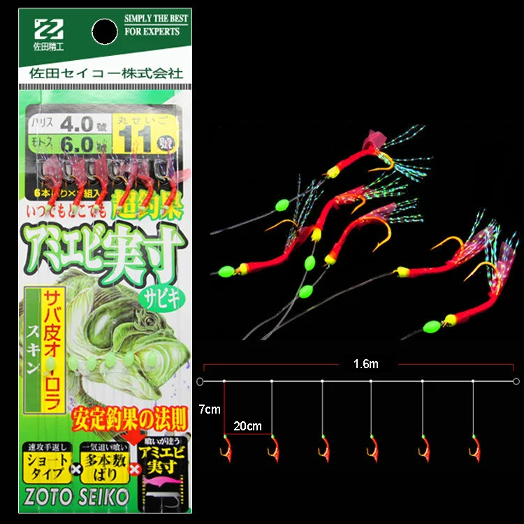 Sabiki-anzuelo de pesca con plumas de caballa, Señuelos de Pesca de lubina, bacalao, aparejos de pesca de mar, cuerda luminosa, B353, 6 unidades