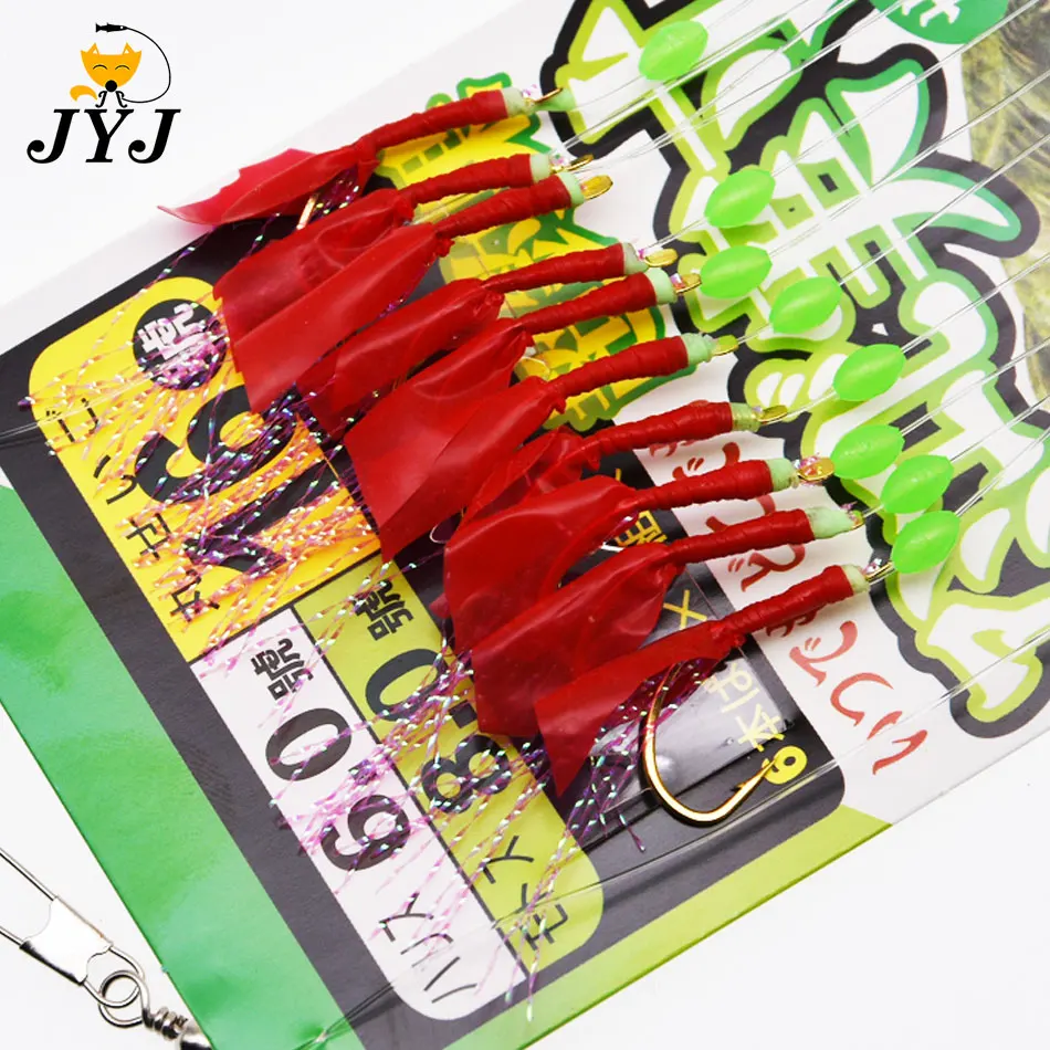 10 bolsas 10 anzuelos/bolsa Sabiki Rigs agua salada cebo de mar luminoso Artificial anzuelos de cadena de piel de pez señuelos de Pesca caballa aparejos de Pesca