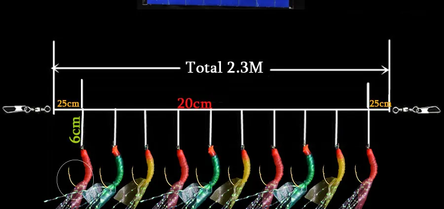 Piel de pesca de material de goma especial bonic, con 3 colores diferentes, con un fuerte efecto a los peces tanto en agua salada como en agua dulce