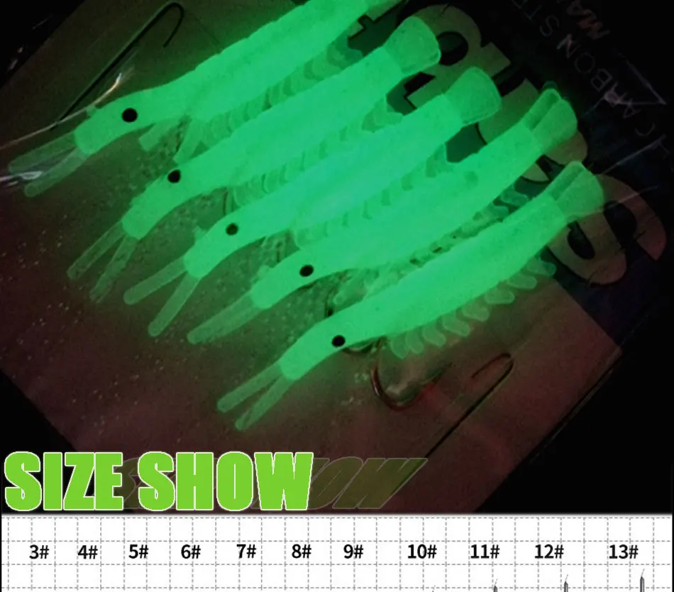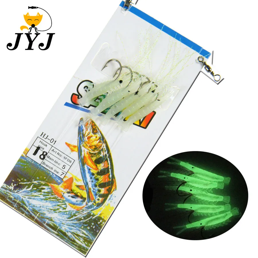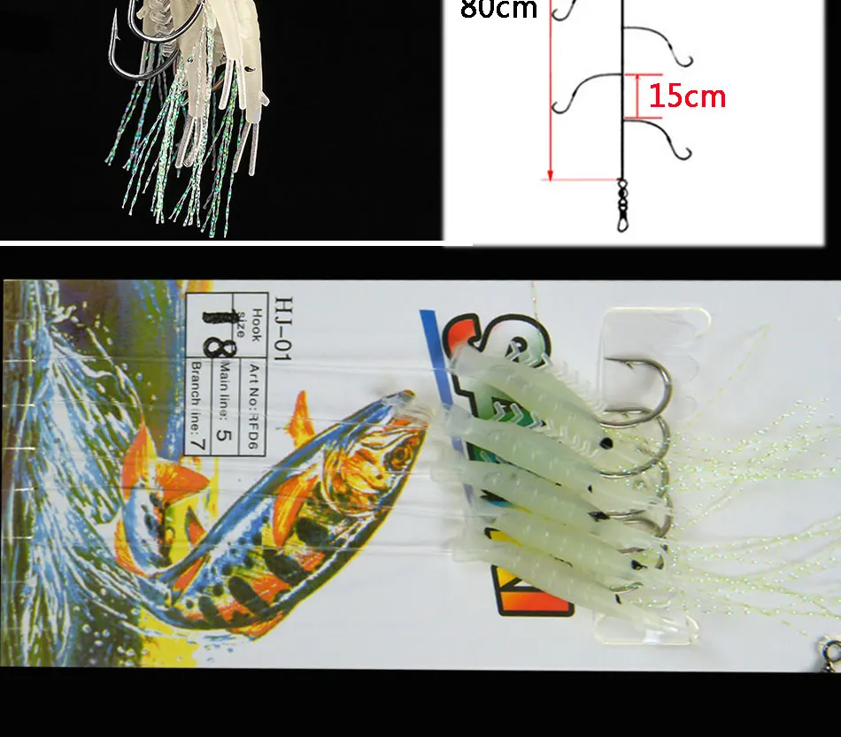 Sabiki anzuelos de pesca con 5 brazos, anzuelos artificiales de camarón suave y luminoso, 3 bolsas