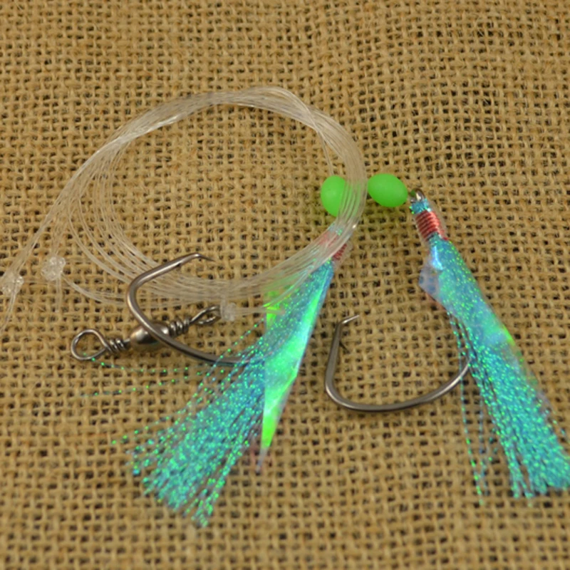 10/50 piezas 1/0 3/0 5/0 6/0 7/0 8/0 aparejos de pesca de mar Sabiki, equipo de pesca intermitente con 2 ganchos de pesca, kit de Pesca de Mar.