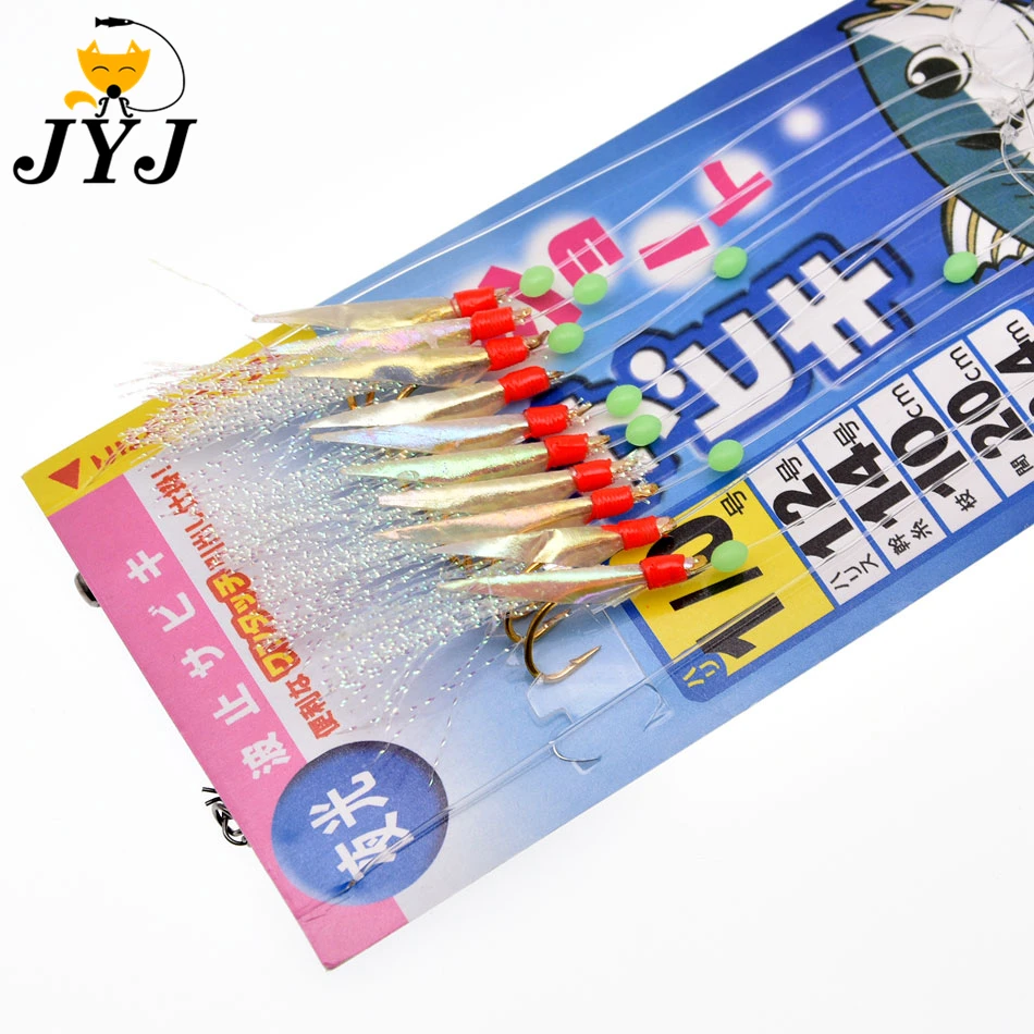 1. Utiliza piel de pescado real, el olor a pescado tiene un efecto de atracción de peces muy fuerte. 2. Anzuelo dorado luminoso apanese, atado firmemente a la línea de pesca 3. El hilo japonés bajo en carbono hace que el Gancho de cuerda sea difícil de anudar y fácil de operar 4. El uso de material de seda cruda Rosa atrae la atención de los peces, con cuentas luminosas, el efecto de pesca es excelente