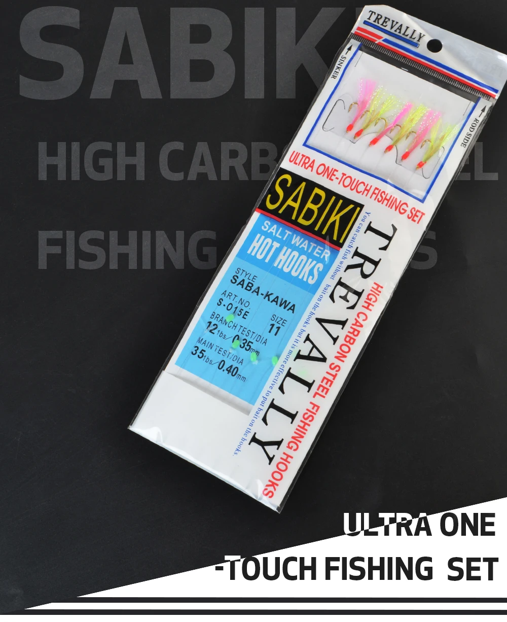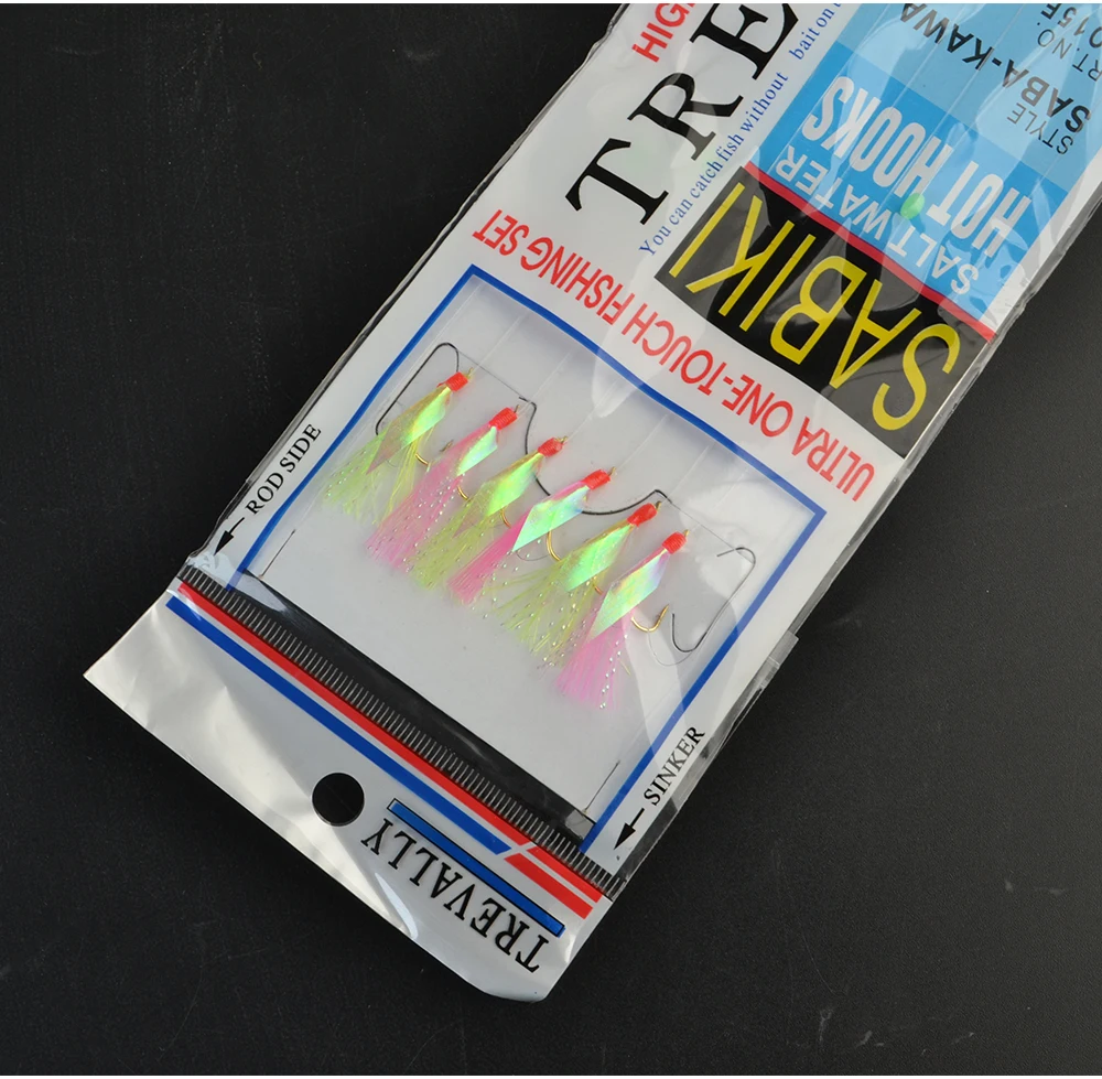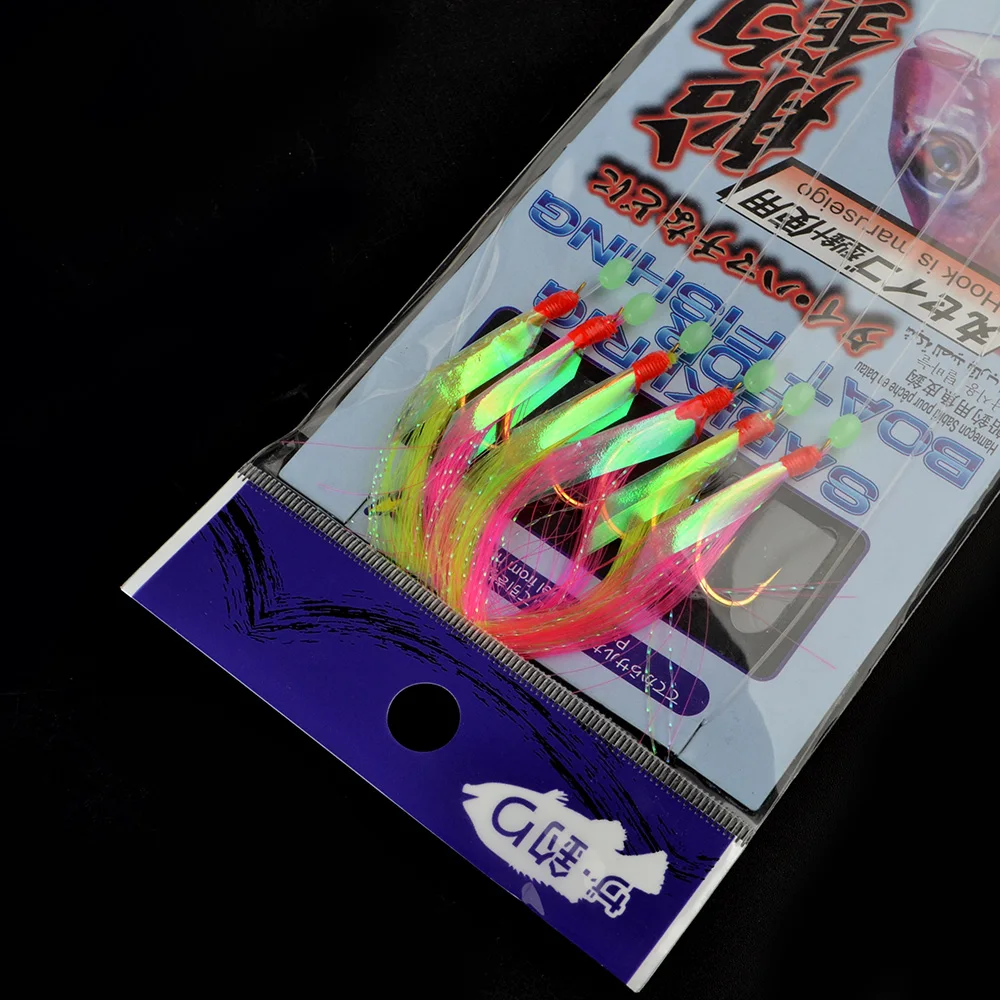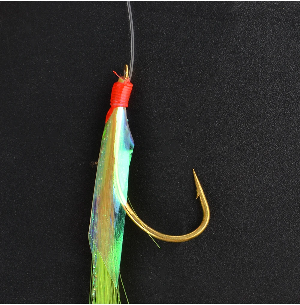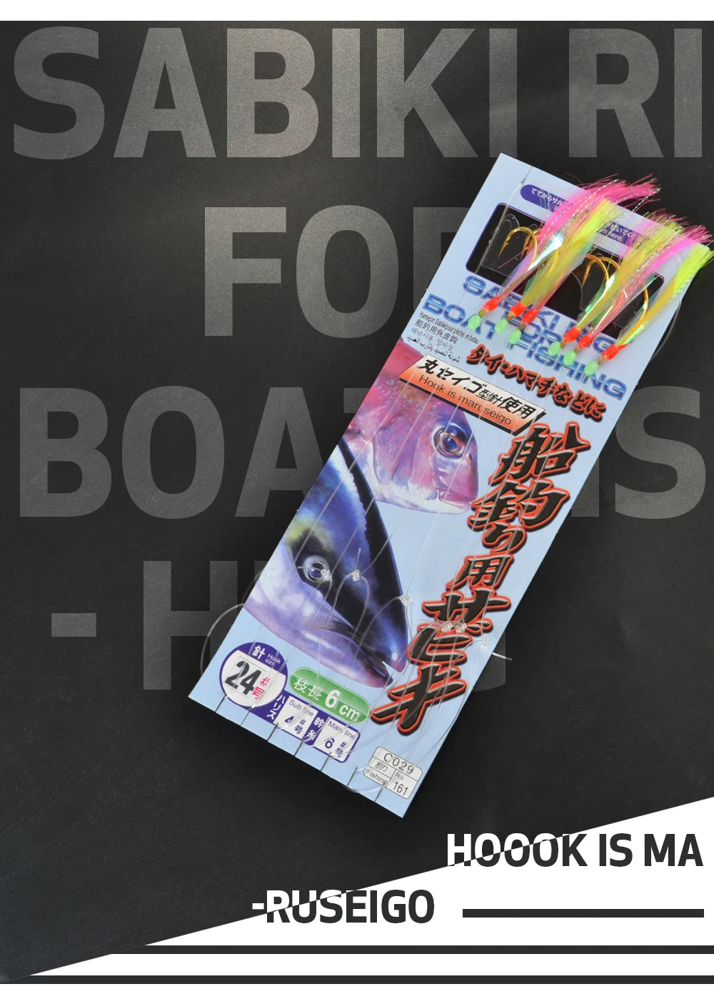 Sabiki Samosir-cebos luminosos para pesca, anzuelos luminosos de Japón-24 9 #2,31 m, con cuentas brillantes, pluma, piel de pescado, para pesca en agua salada