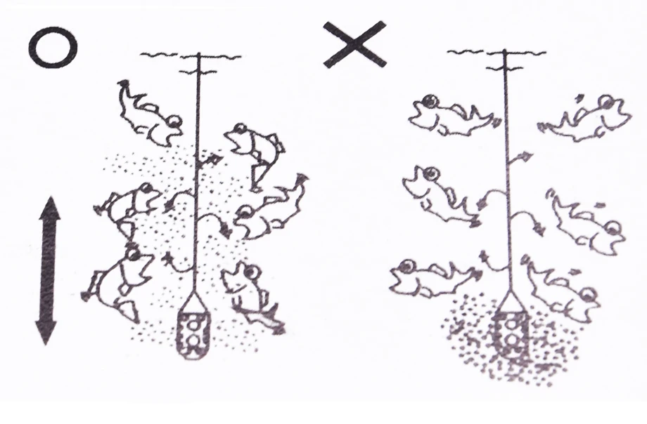 1) Agita el chumpot varias veces para que el chum se extienda y atraiga a los peces.