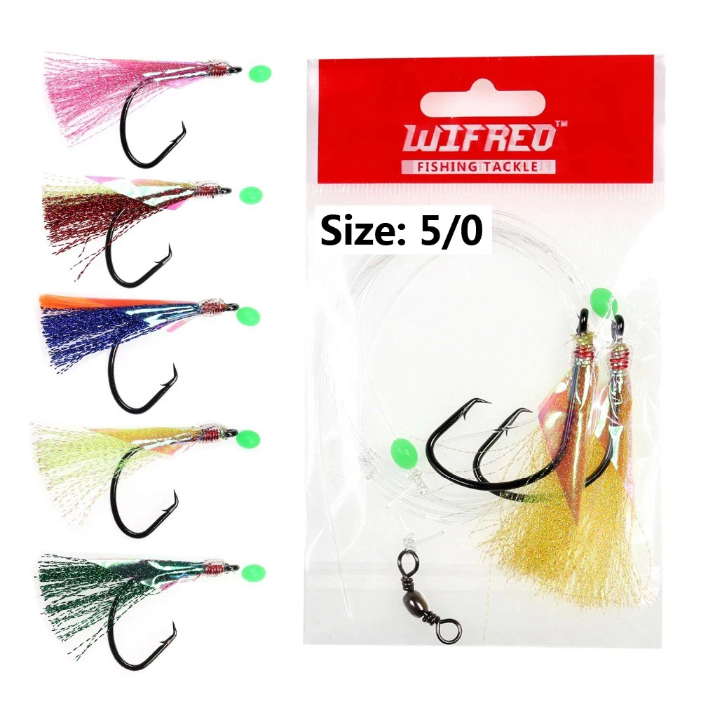 10 paquetes de 5/0 ganchos gemelos Flasher Rig Sabiki Snapper Snatcher Flasher Rigs para Kingfish, salmón, Sastre, Flathead Verde Negro