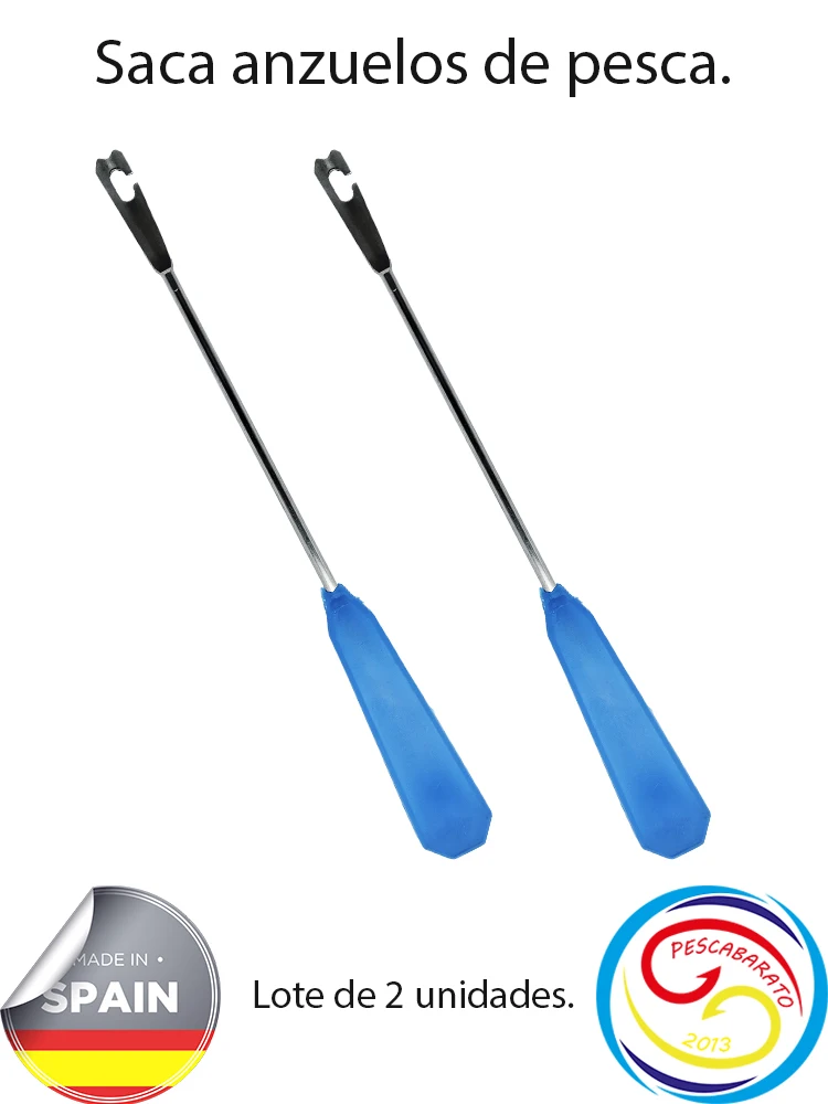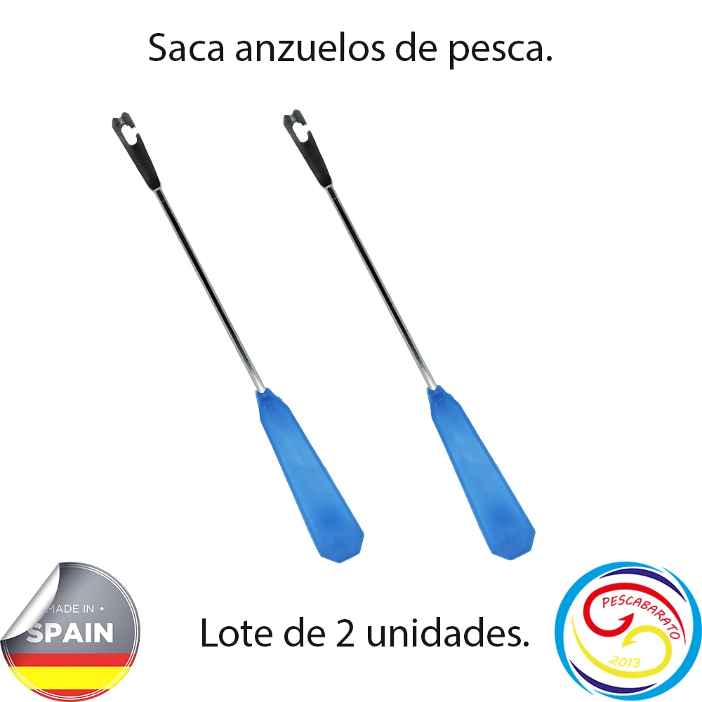 Saca anzuelos de pesca, saca anzuelos plano de acero inoxidable, lote de 2 unidades. mango de plástico de color azul. Pesca barato