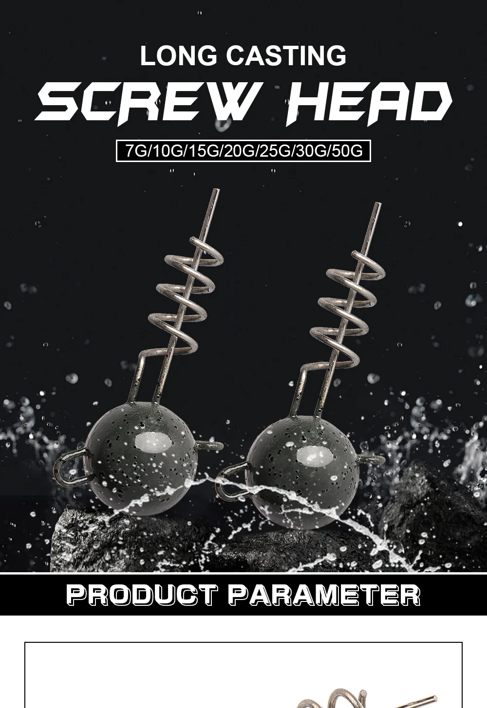 Cabezal de plantilla de sacacorchos Spinpoler con tornillo de goma en espiral pez Softbaits bola de tornillo 7g 10g 15g 20g 30g 50g peso de aparejos de pesca