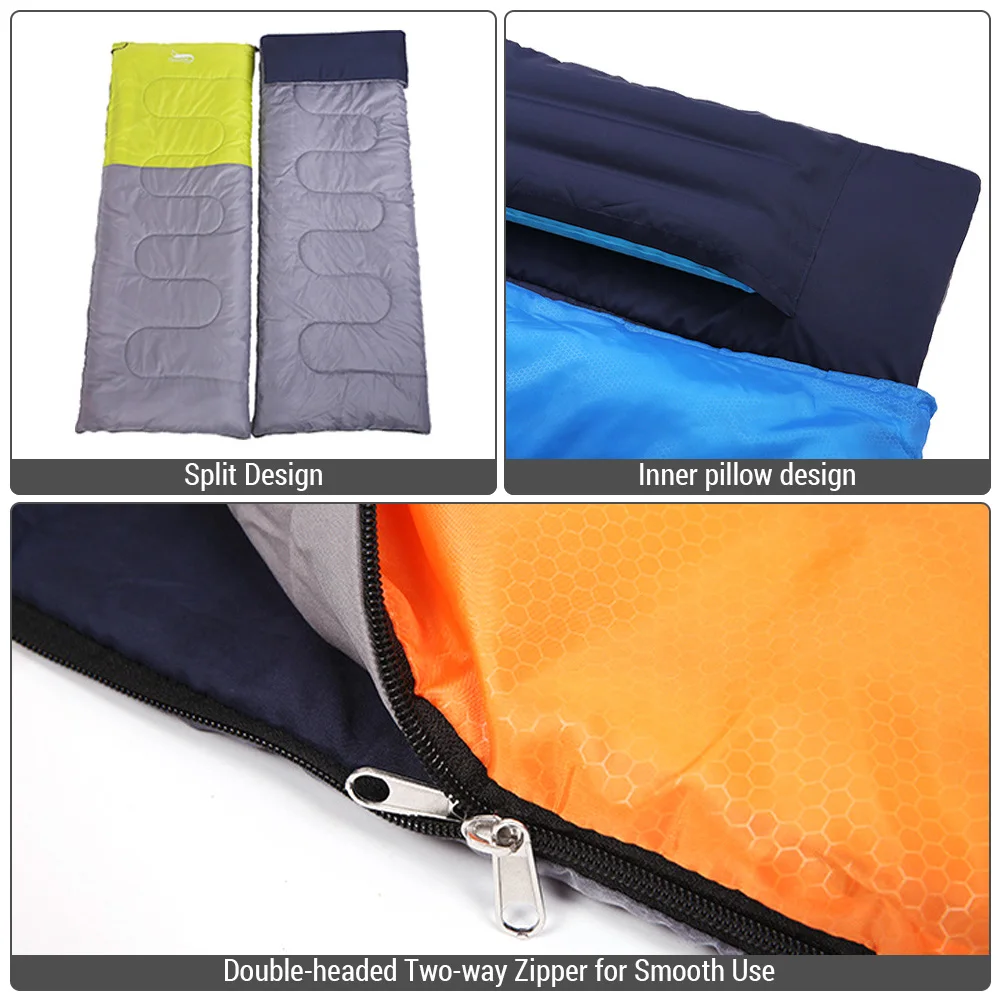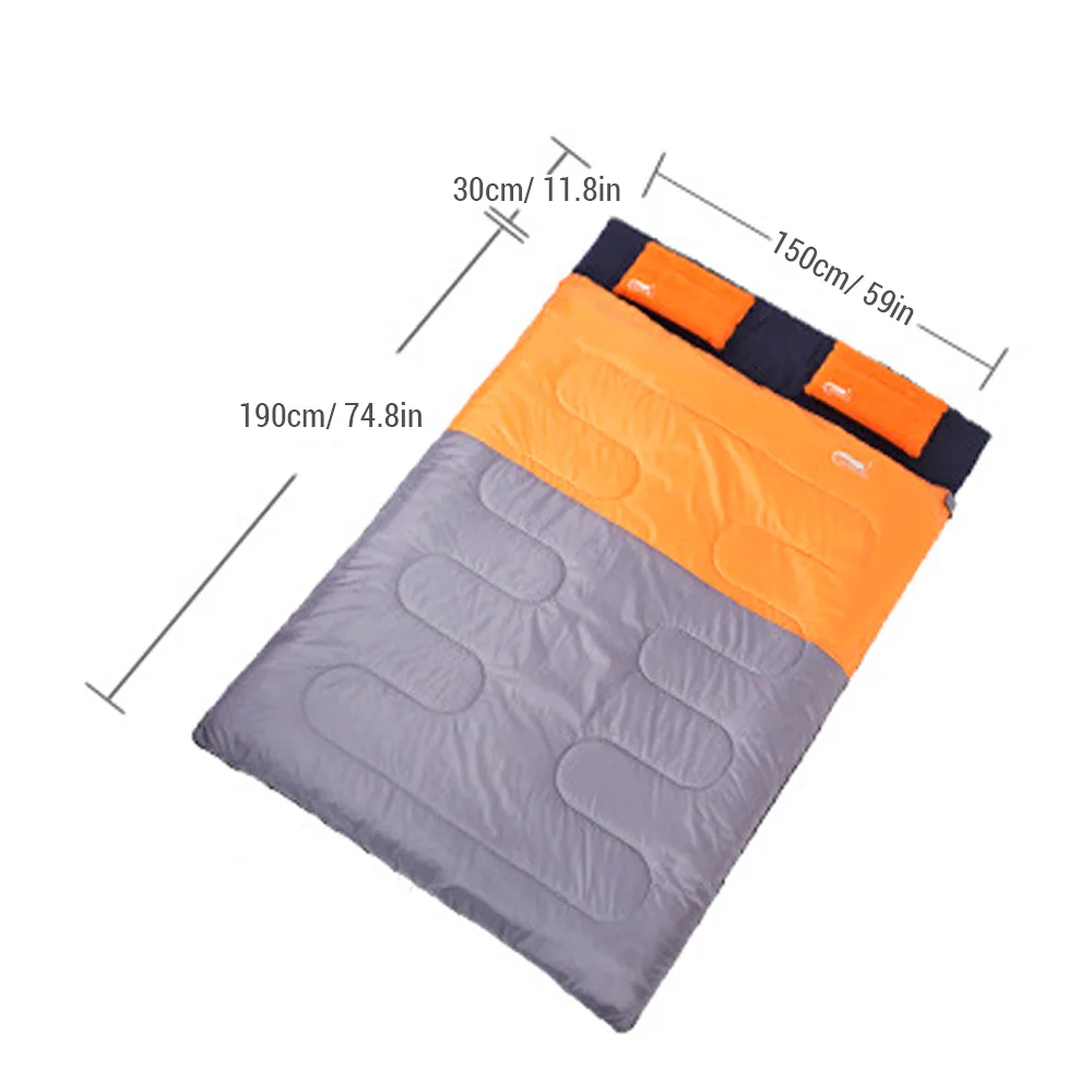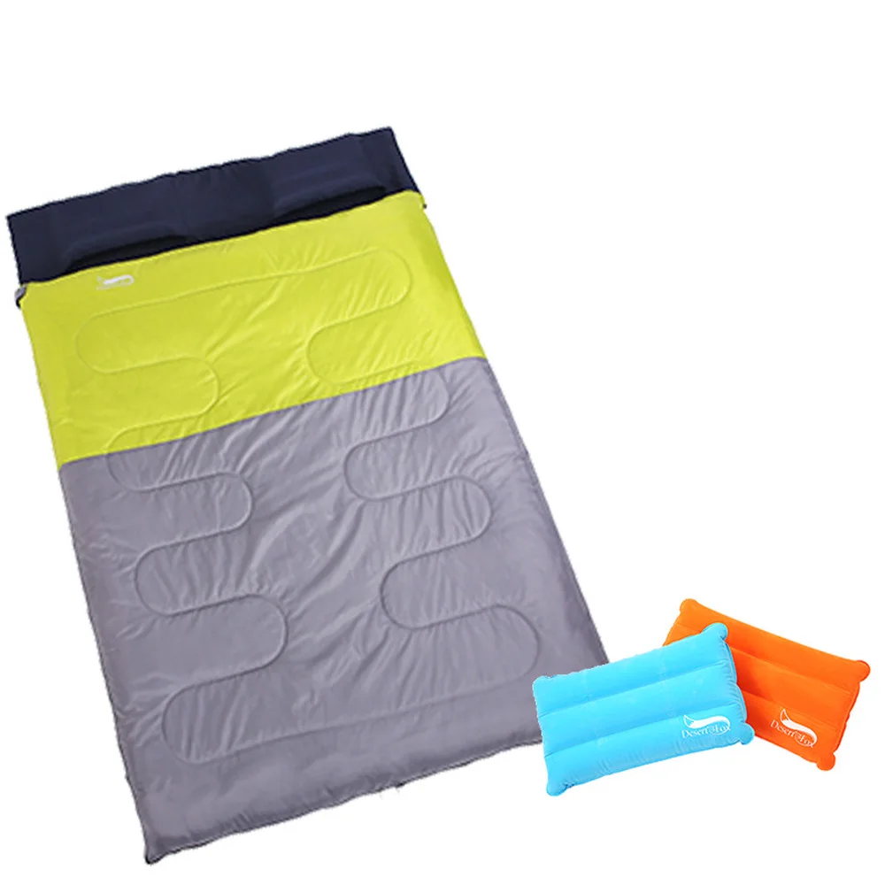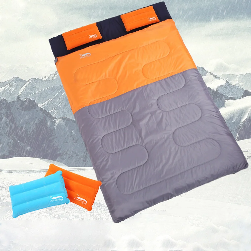 El saco de dormir para 2 personas también viene con dos almohadas pequeñas, que proporcionan un excelente soporte para el cuello y el cuerpo, lo que garantiza un sueño nocturno cómodo y reparador.