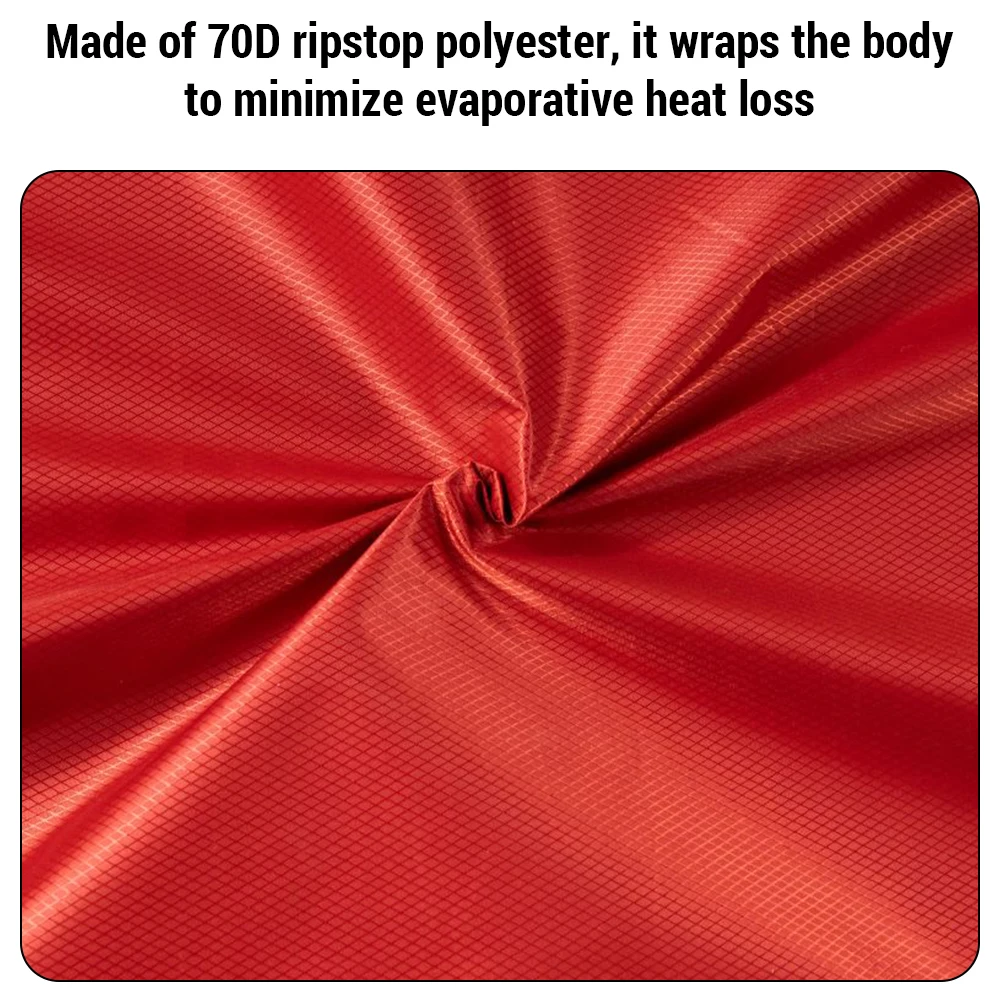 Fabricado en poliéster ripstop 70D, envuelve el cuerpo para minimizar la pérdida de calor por evaporación.