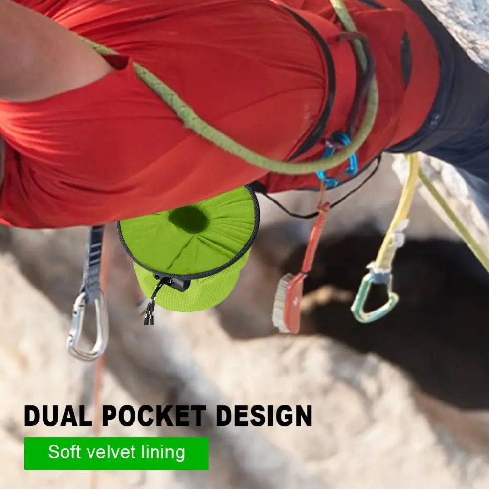 Material: Poliéster (impermeable, sucio y resistente al desgaste) Color (opcional): Azul/Verde/rojo/amarillo/Negro tamaño: diámetro DE LA BASE 11 CM/4,33 pulgadas Altura 17,5 CM/6,89 pulgadas, Longitud del cepillo 18 CM/7,09 pulgadas * Ancho 2,3 CM/0,91 pulgadas Peso: Paquete de polvo de magnesio 87G, longitud de la correa del cepillo de 25G: hasta 104 cm/40,94 pulgadas después del ajuste (El tamaño se mide manualmente, hay un pequeño error) Usos: escalada en roca, montañismo, escalada con cuerda, levantamiento de pesas, etc. Característica: 1. Cinturón de liberación rápida ajustable: La bolsa de tiza C viene equipada con una correa ajustable con una hebilla de liberación rápida, lo que garantiza un ajuste seguro y cómodo alrededor de la cintura para escaladores de todos los tamaños. 2. Forro de terciopelo suave: El interior está forrado con terciopelo suave, diseñado para minimizar la pérdida de polvo de agarre, manteniendo el contenido seguro incluso durante las escaladas más rigurosas con cubo de bolsa de tiza impermeable. 3. Amplio almacenamiento con bolsillos duales: el cubo de bolsa de tiza B cuenta con dos bolsillos laterales con cremallera para un almacenamiento conveniente de elementos esenciales como teléfonos, llaves y tarjetas, más tres lazos elásticos para sujetar equipo adicional como mosquetones y un cepillo de limpieza. 4. Cepillo de escalada complementario: el equipo de escalada R ock incluye un cepillo de alta calidad para ayudar a los escaladores a limpiar eficazmente los soportes, asegurando un agarre óptimo y la seguridad en la cara de la roca. 5. Amplia apertura para un fácil acceso: la gran apertura de la bolsa de tiza para escalada en roca acomoda a escaladores de todas las edades, lo que permite un acceso rápido y fácil al polvo de agarre, independientemente de lo alto del acantilado que estés. El paquete incluye: 1 bolsa de tiza de escalada, 1 cepillo