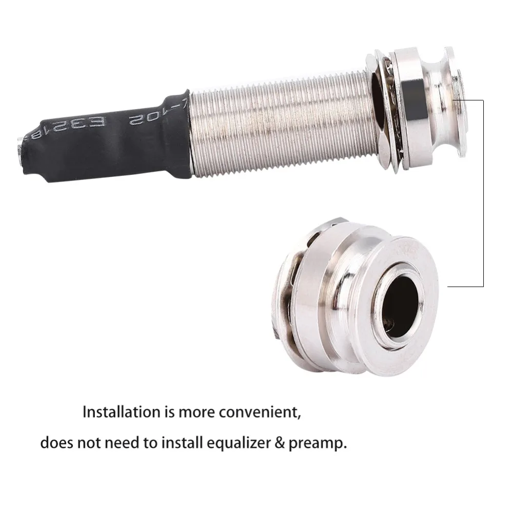 Audio input jack can be directly connected with bridge piezo transducing pickup bar, while output jack connects the audio.