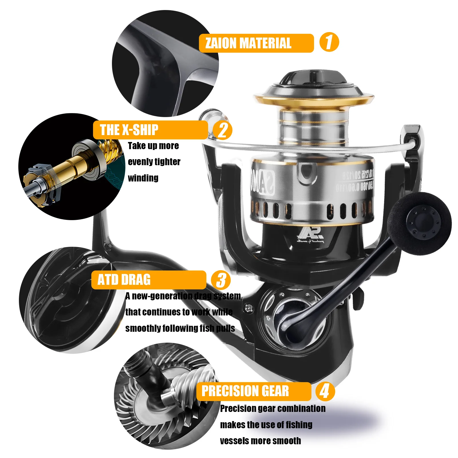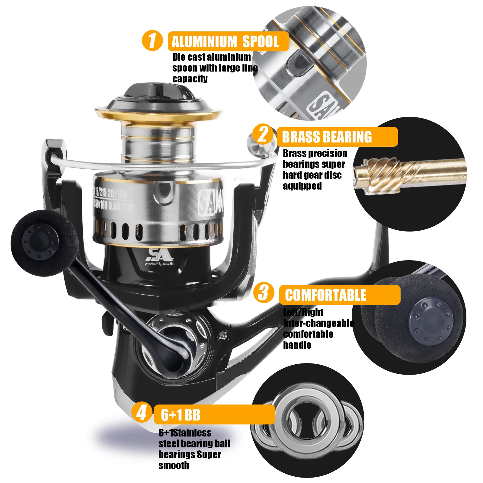 SAMOLLA 8-12KG carrete giratorio de arrastre máximo cuerpo de Metal duradero carrete de pesca de agua dulce y salada carrete de pesca