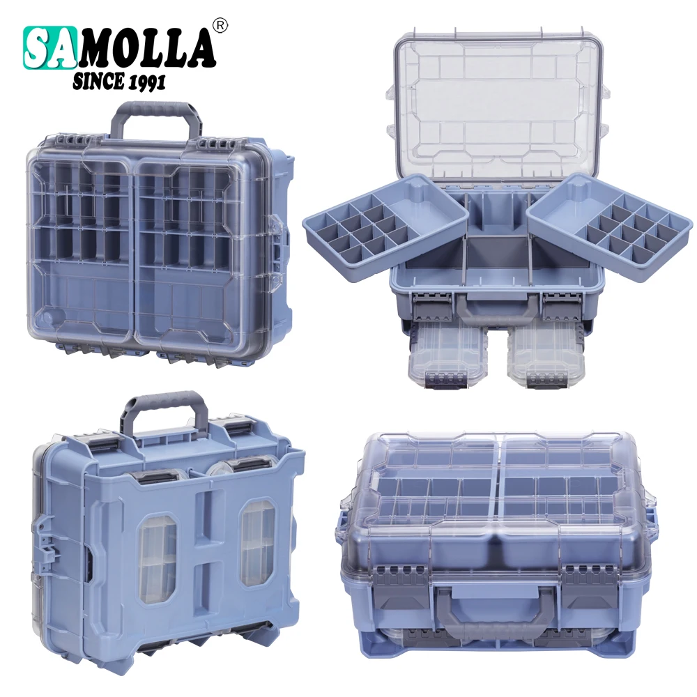 SAMOLLA-caja de aparejos de pesca de gran capacidad, portátil, multifuncional, impermeable, accesorios de cebo, caja de almacenamiento para acampar al aire libre