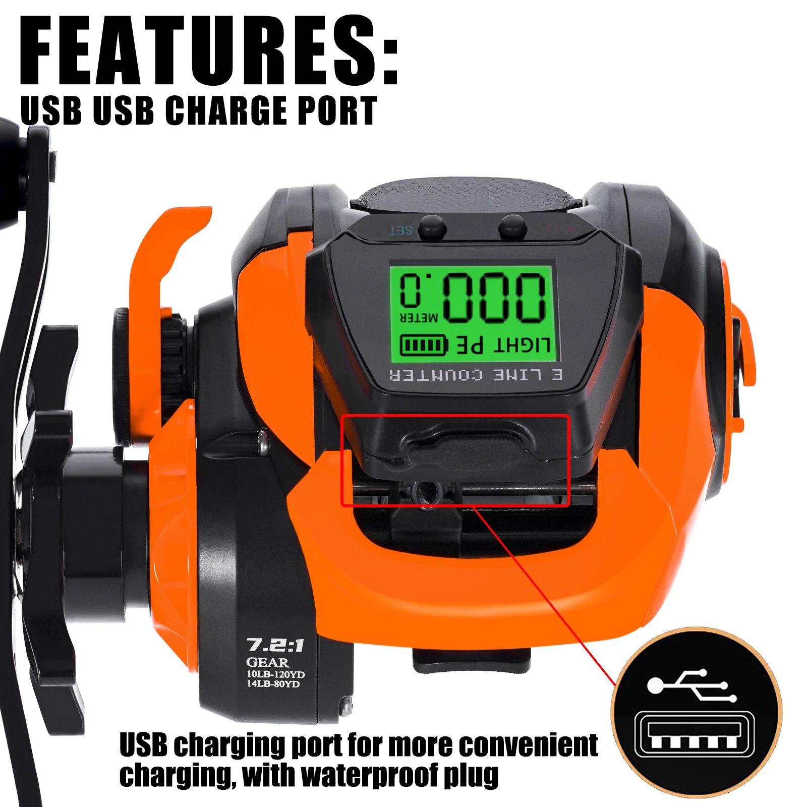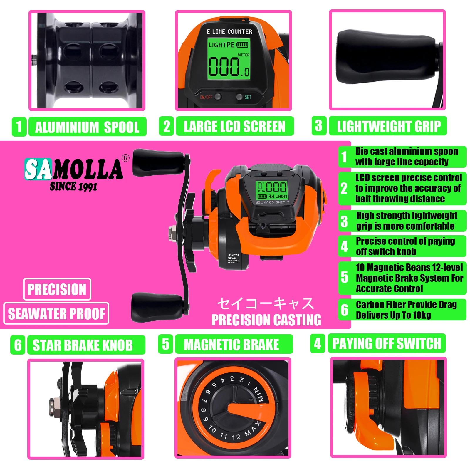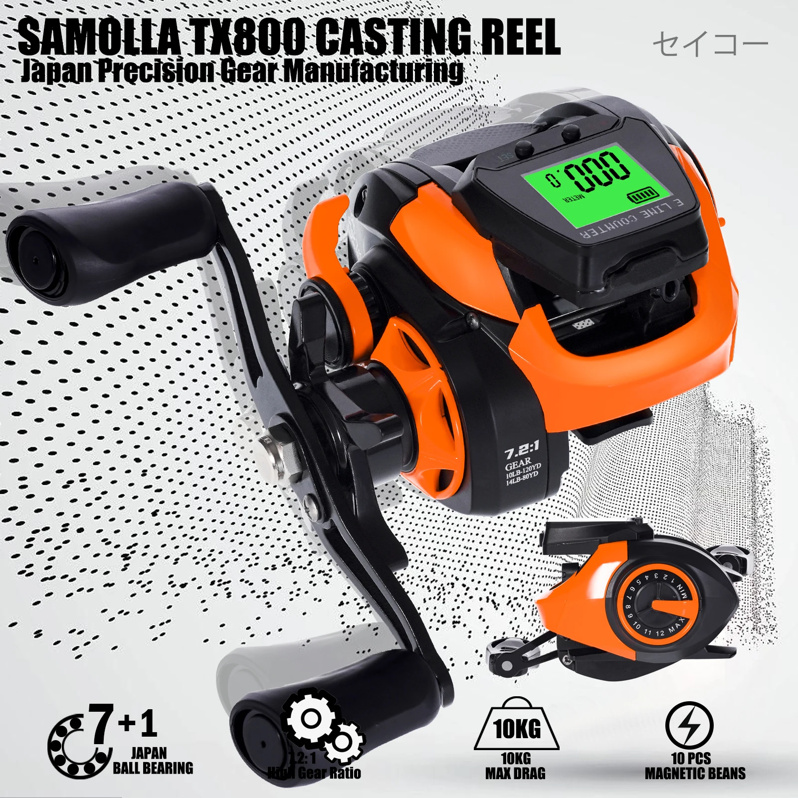 SAMOLLA-carrete de pesca Baitcasting electrónico, pantalla Led grande, alta velocidad, 7,2: 1, 10kg, agua salada, tambor fundido a prueba de agua