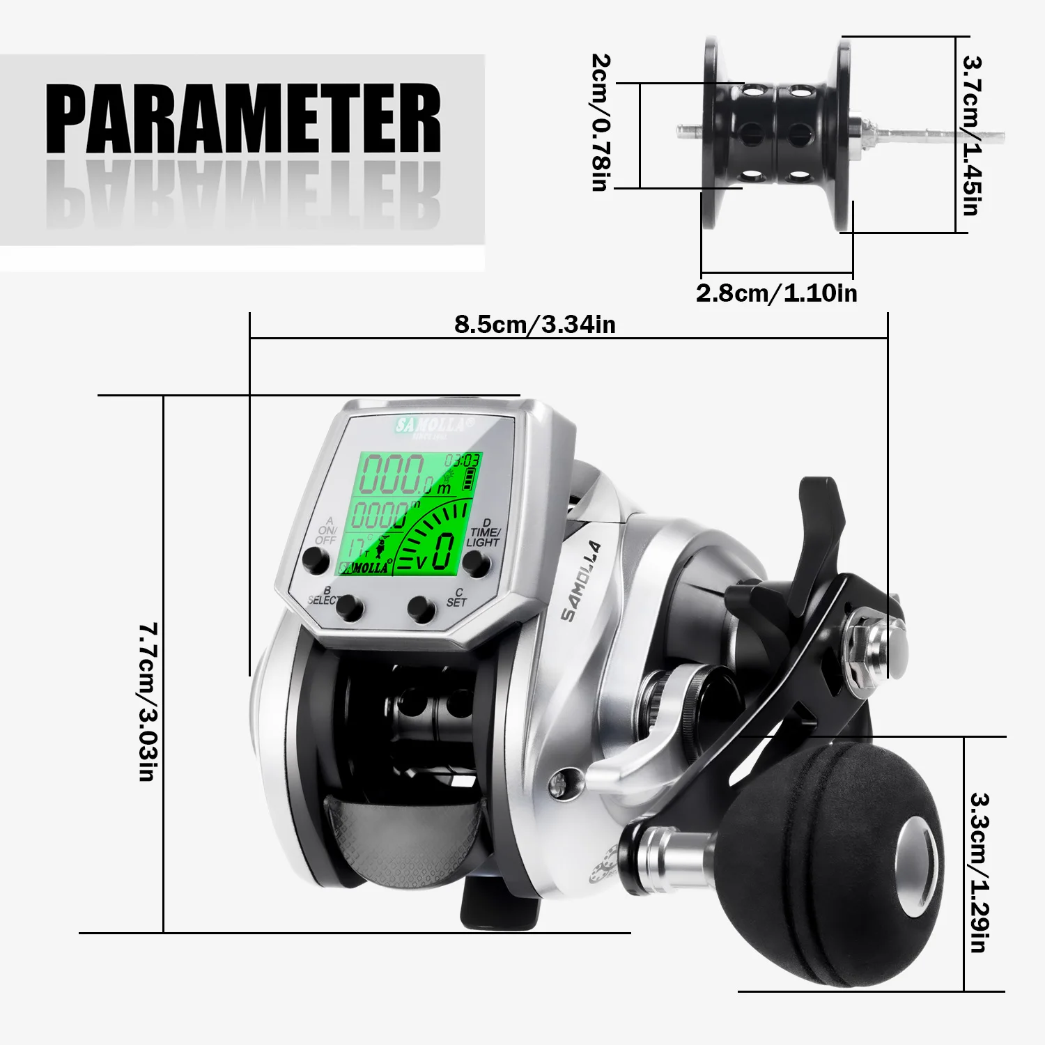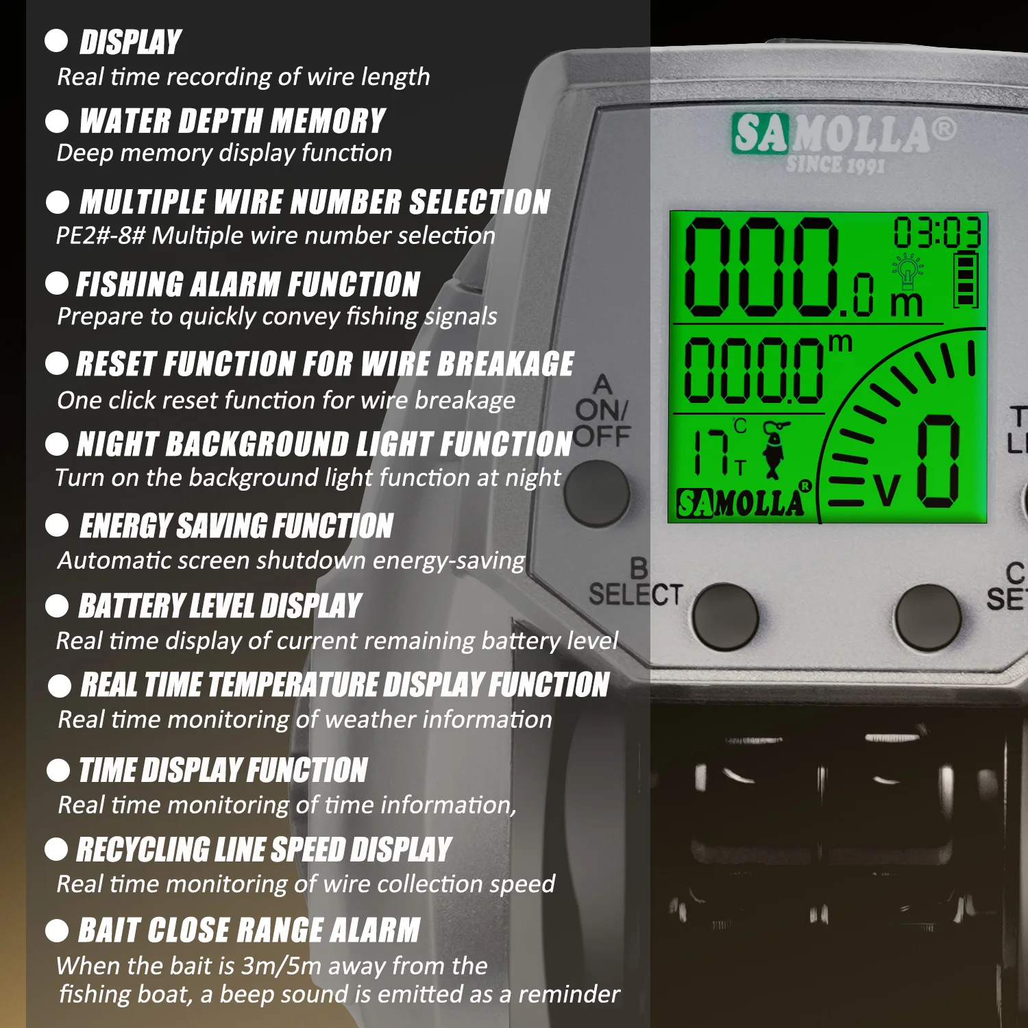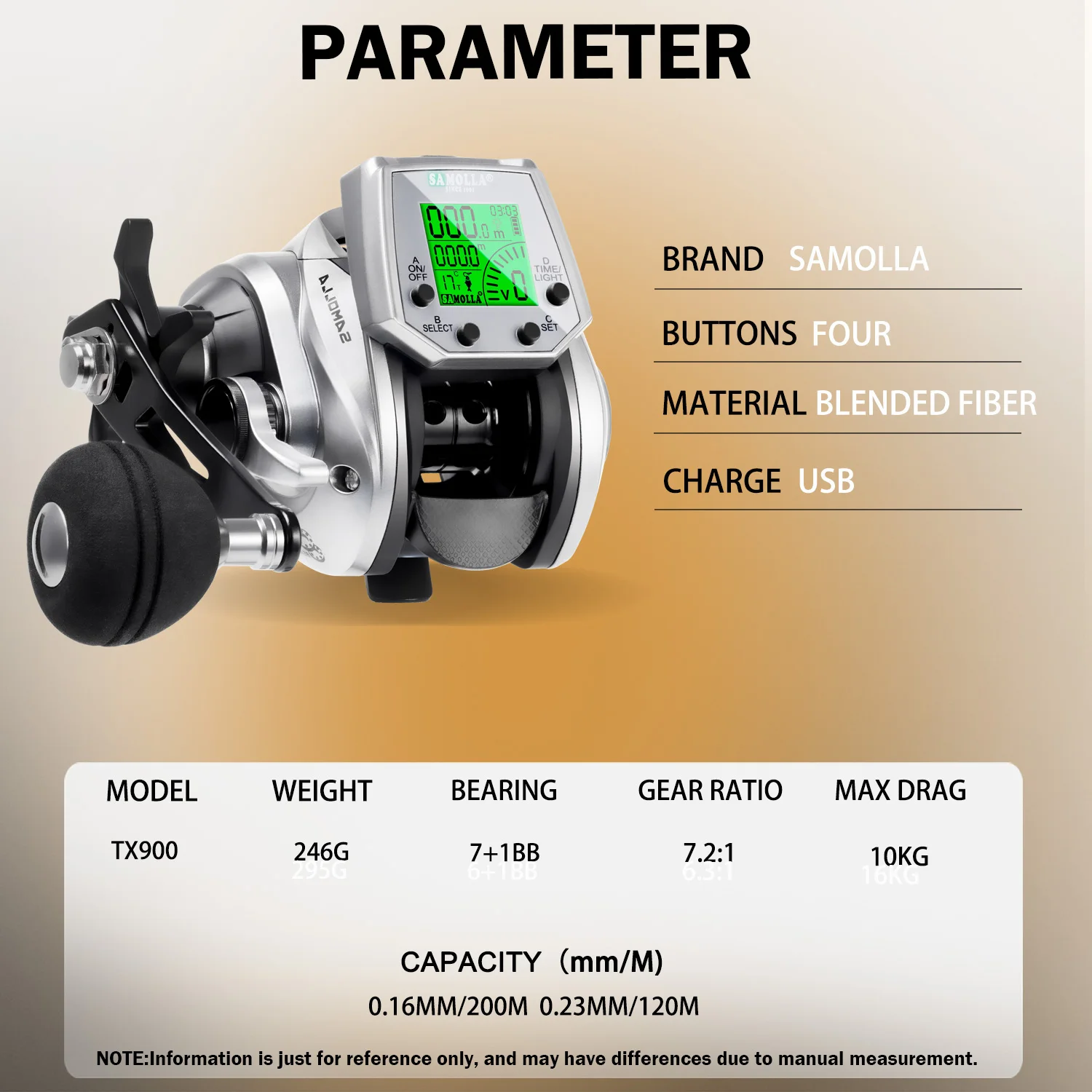 SAMOLLA-carrete de pesca electrónico para Baitcasting, pantalla Led, carga USB y Solar 7,2: 1, rueda de tambor fundida impermeable para agua salada