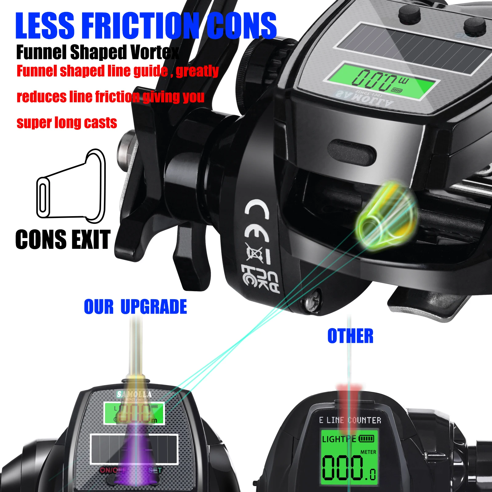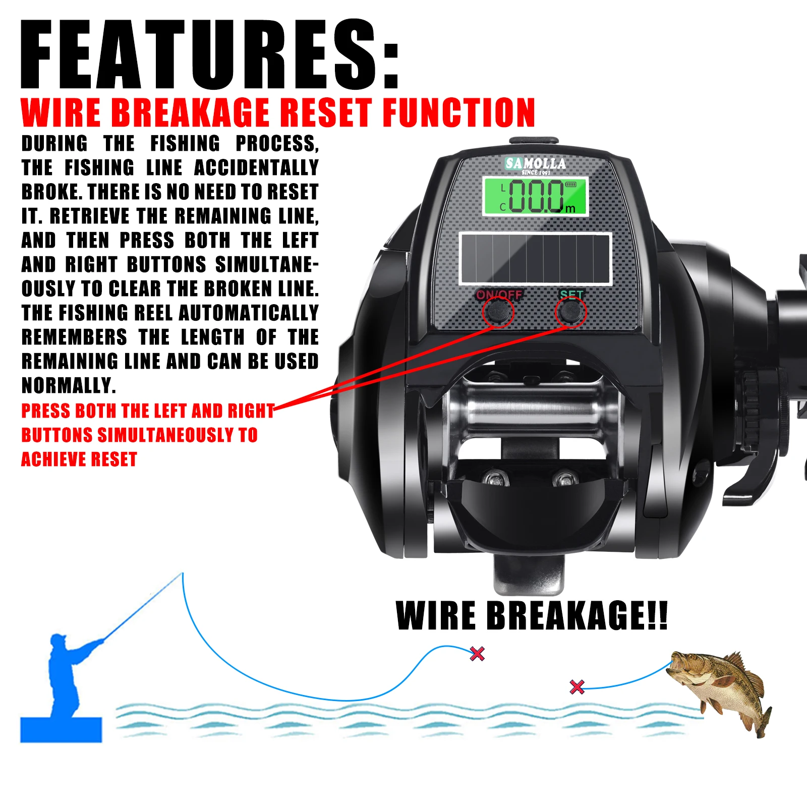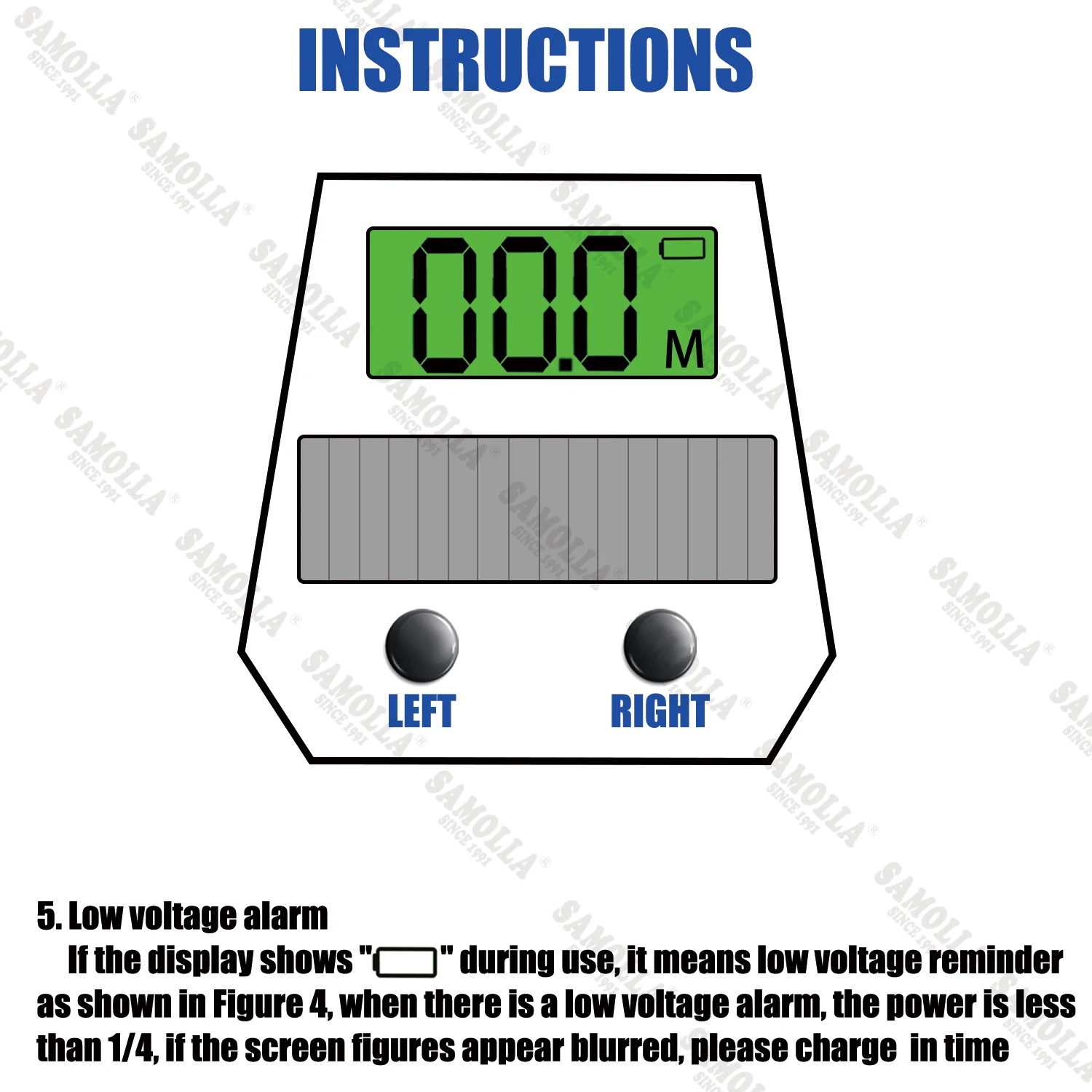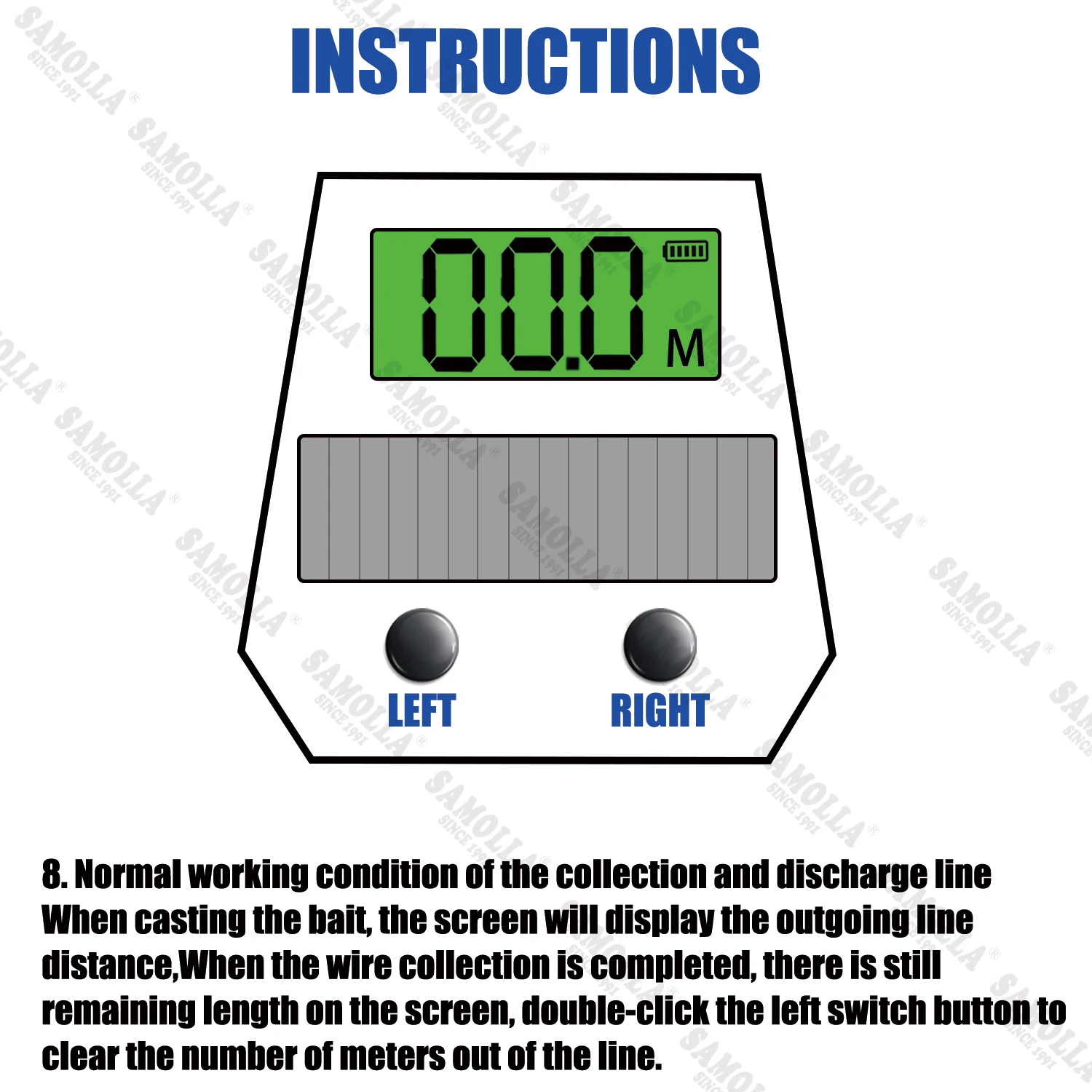 El medidor solo funciona en una dirección para el enrollo. Falta la letra l en la esquina superior izquierda. Se suponía que debía llegar el día 15, pero llegó el día 30.