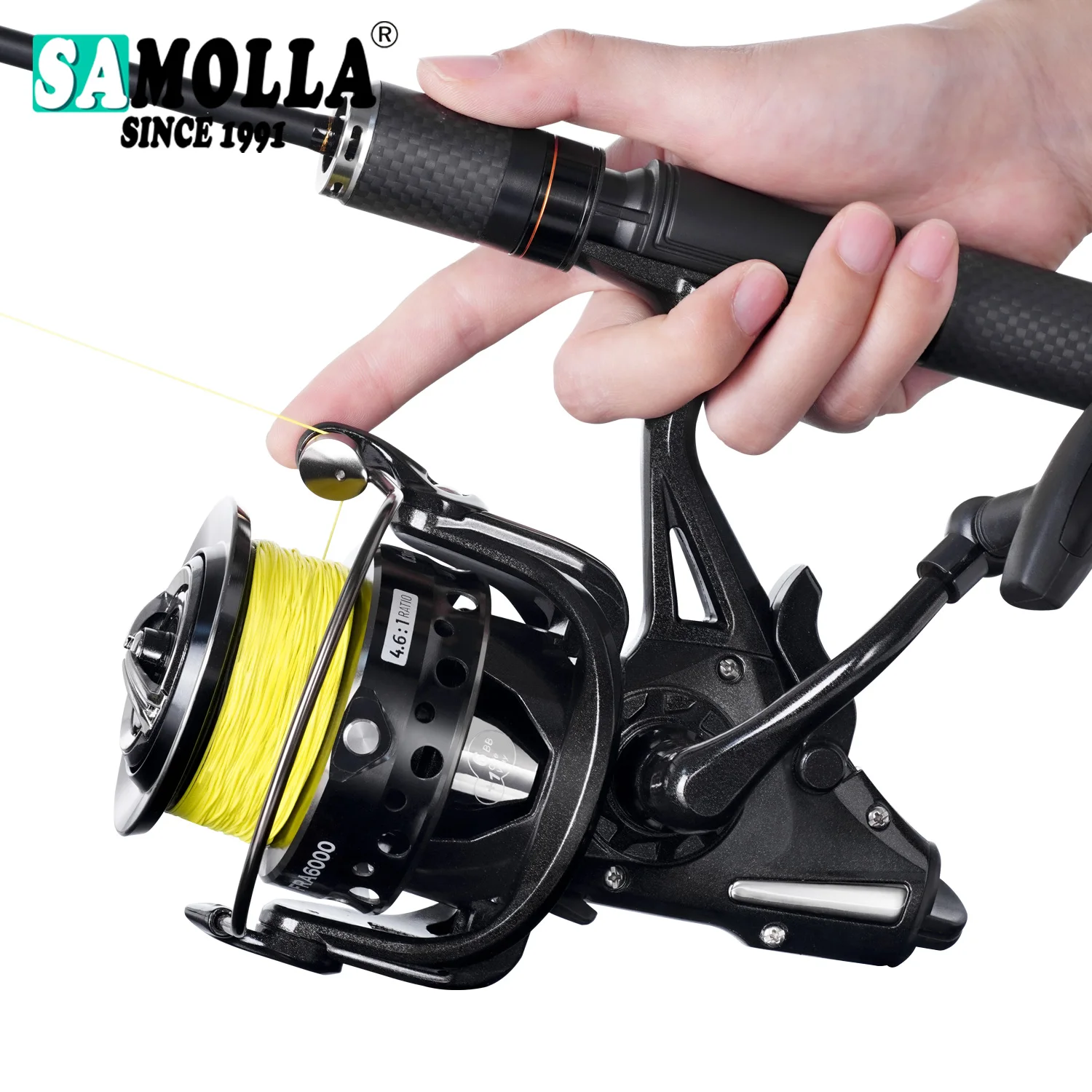 SAMOLLA carrete de pesca giratorio carrete de pesca de carpa mar doble arrastre carrete de Metal Jigging Trolling tiro largo fundición 12-15kg arrastre máximo