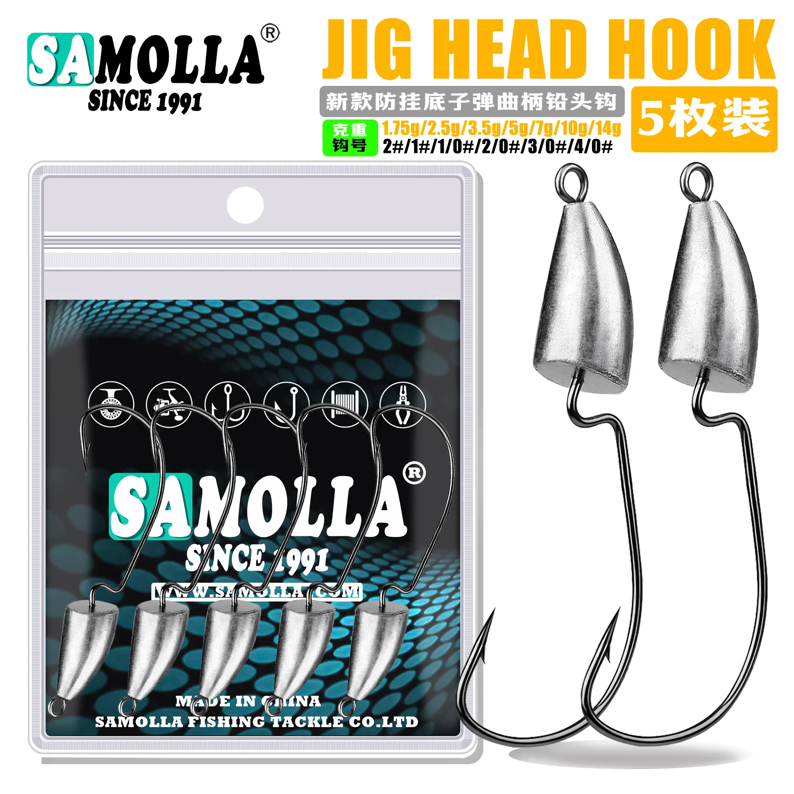 SAMOLLA-gancho de plomo de manivela de bala, prevención de cruce de obstáculos, gancho de raíz inferior colgante, gancho de refuerzo, cuerpo de pez mandarín, Perc