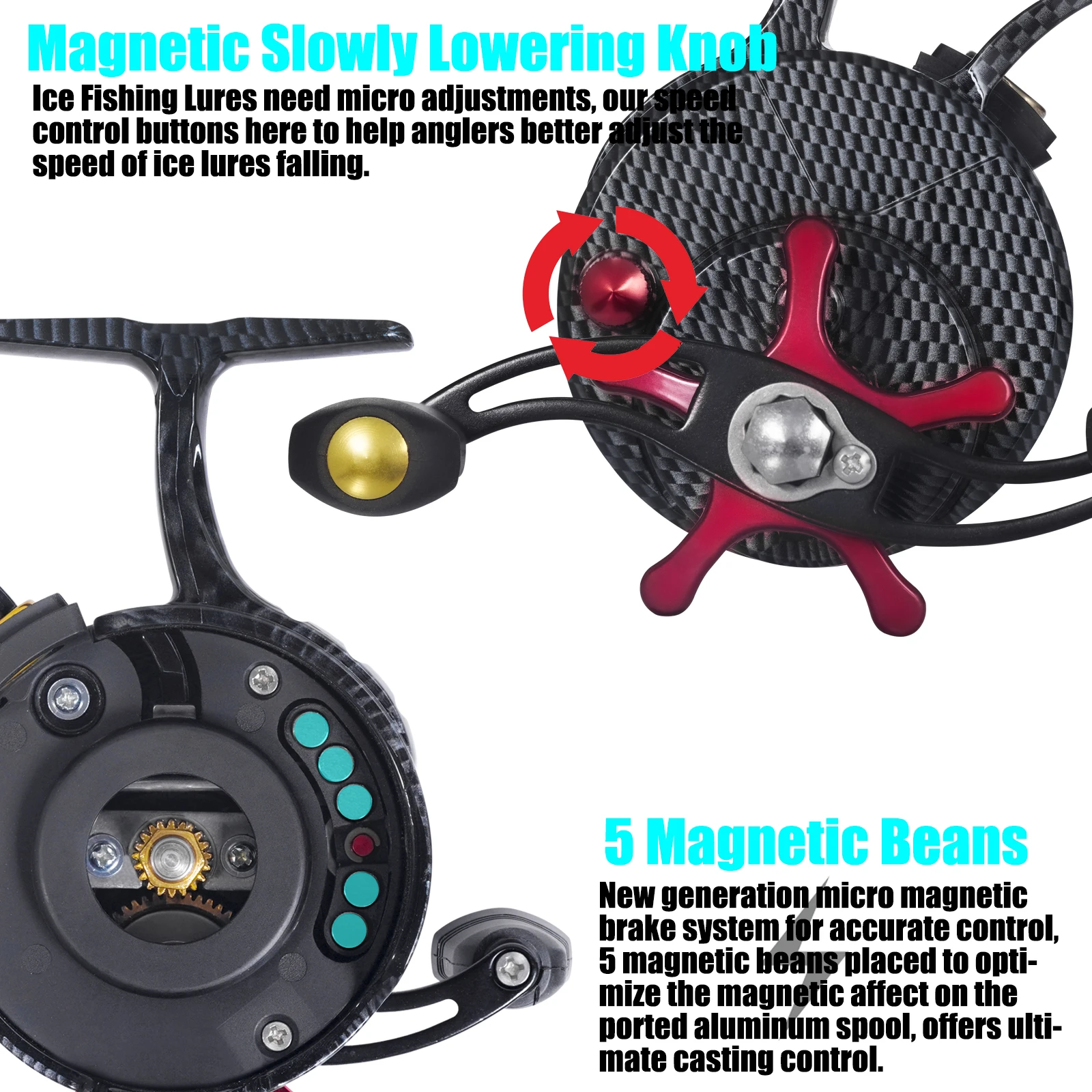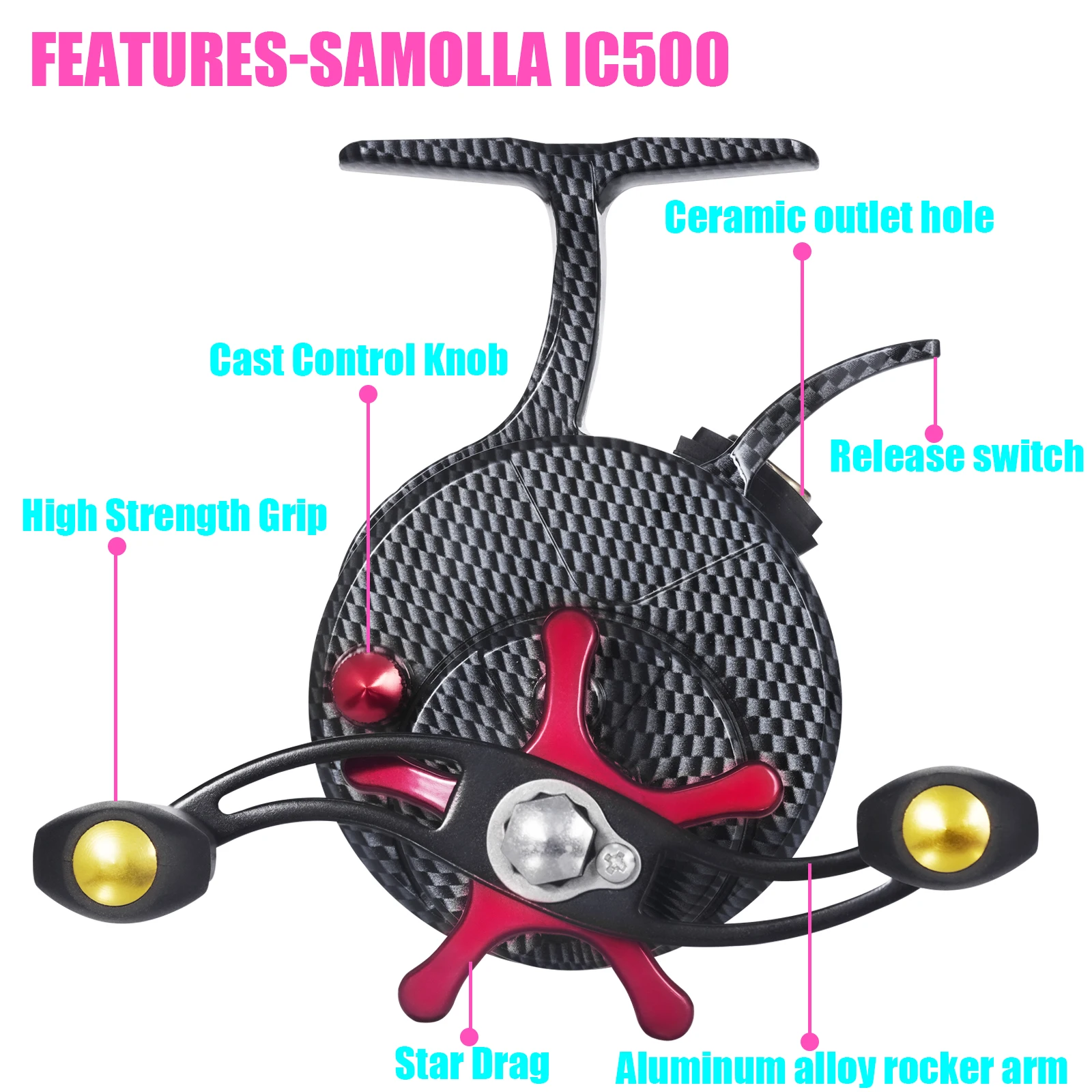 SAMOLLA nuevas carretes de pesca en hielo de invierno bobina de pie alto 3,5: 1 sistema de caída magnética Ultra suave carrete de hielo en línea lanzador de aleación de aluminio