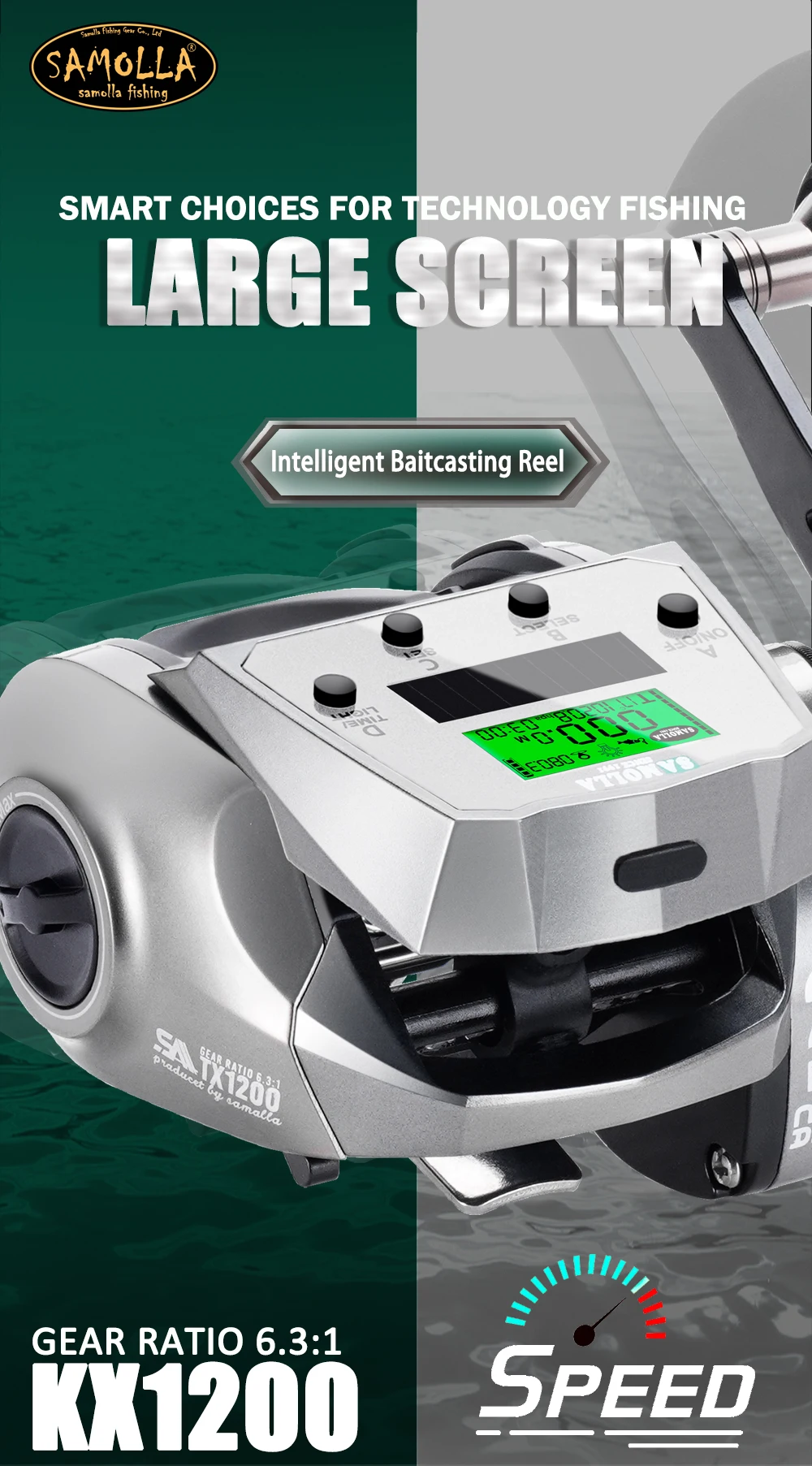 SAMOLLA nuevo carrete de pesca electrónico grande Solar + carga USB pantalla grande temperatura/presión de aire carrete de Baitcasting