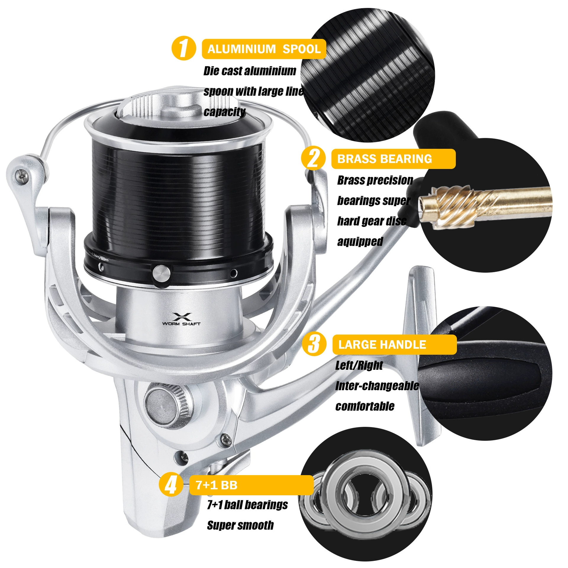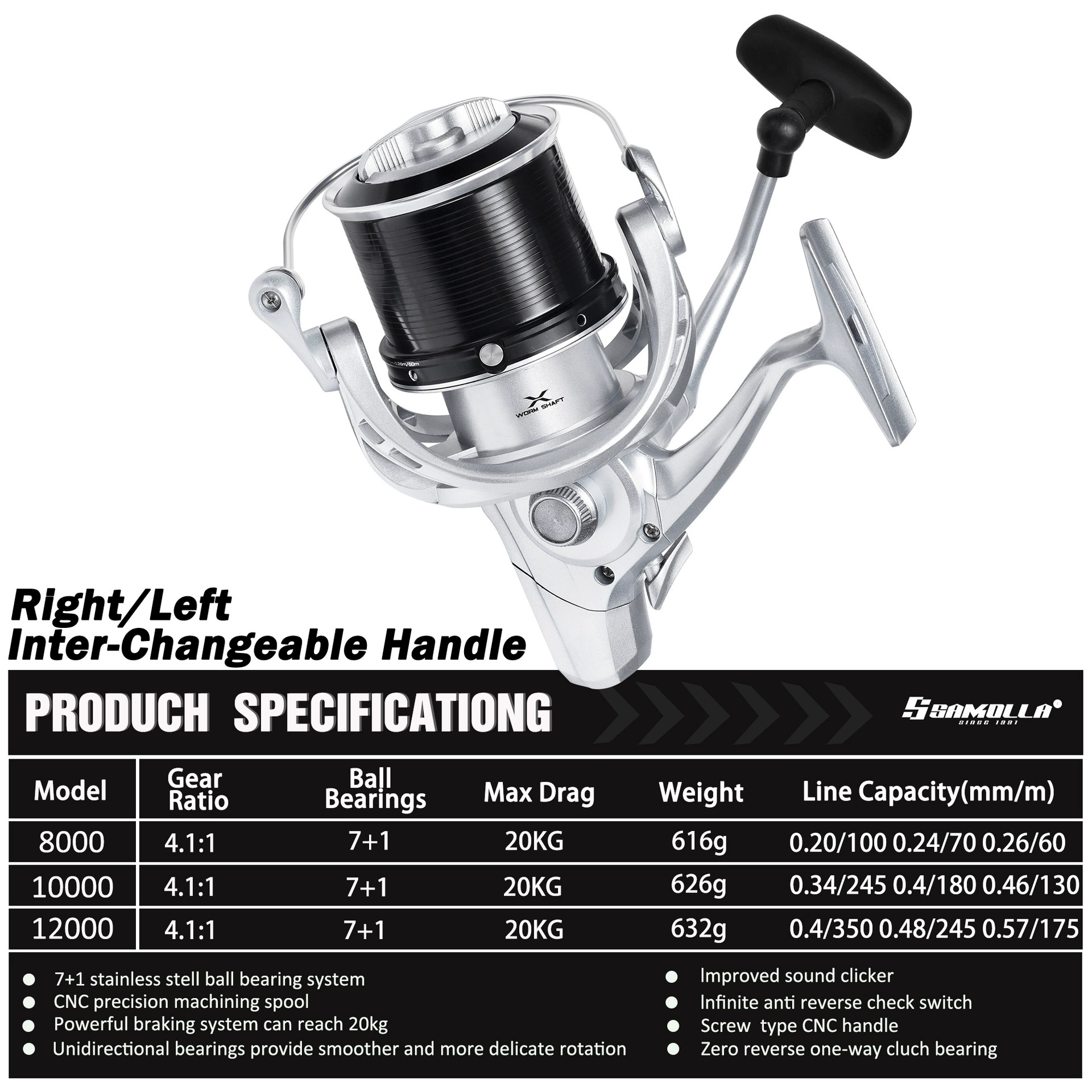 SAMOLLA nuevo carrete de Pesca giratorio arrastre fuerte 20kg eje gusano mar carretes agua salada accesorios rueda giratoria fundición larga