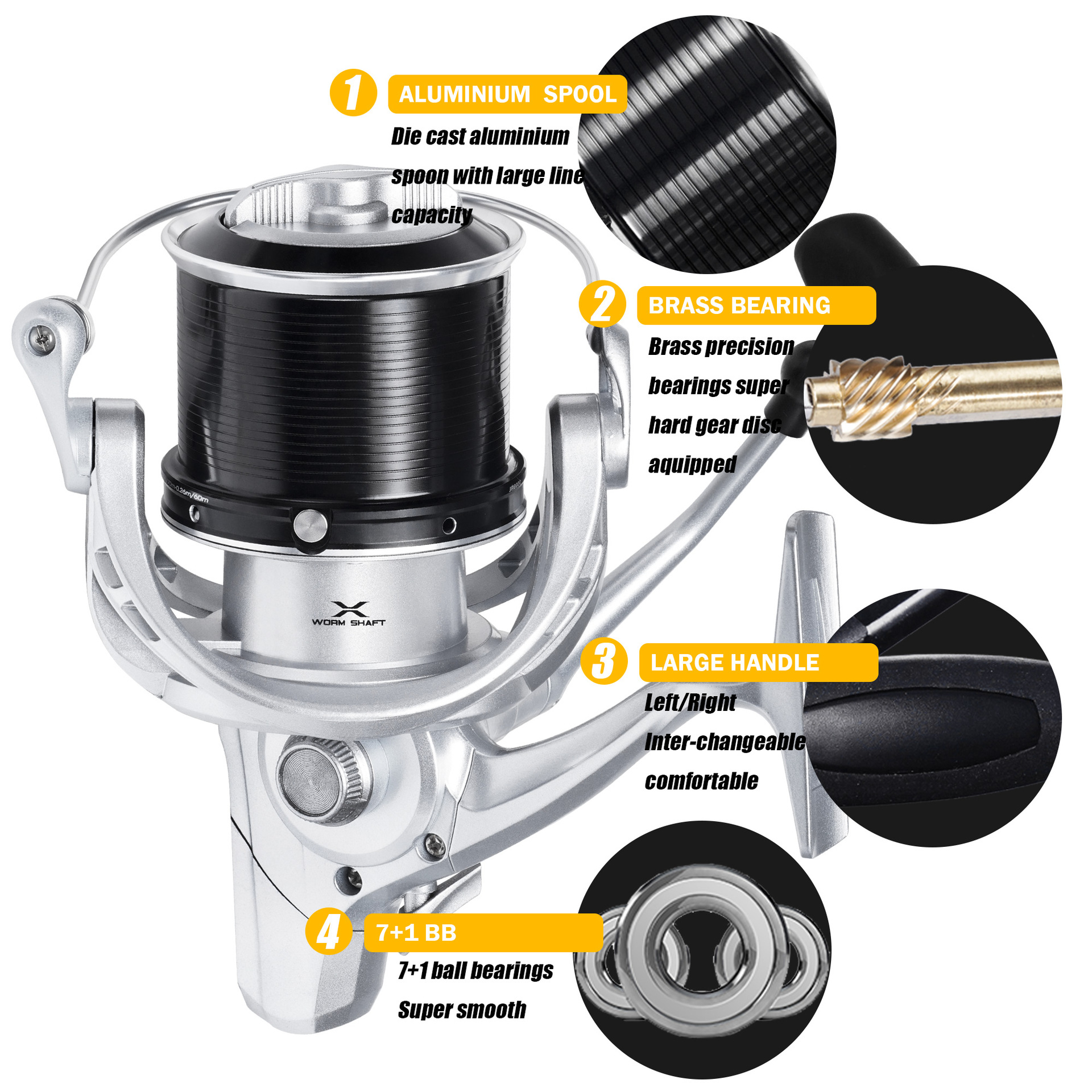 SAMOLLA nuevo carrete de Pesca giratorio arrastre fuerte 20kg eje de gusano Pesca mar carretes de agua salada accesorios rueda giratoria de fundición larga