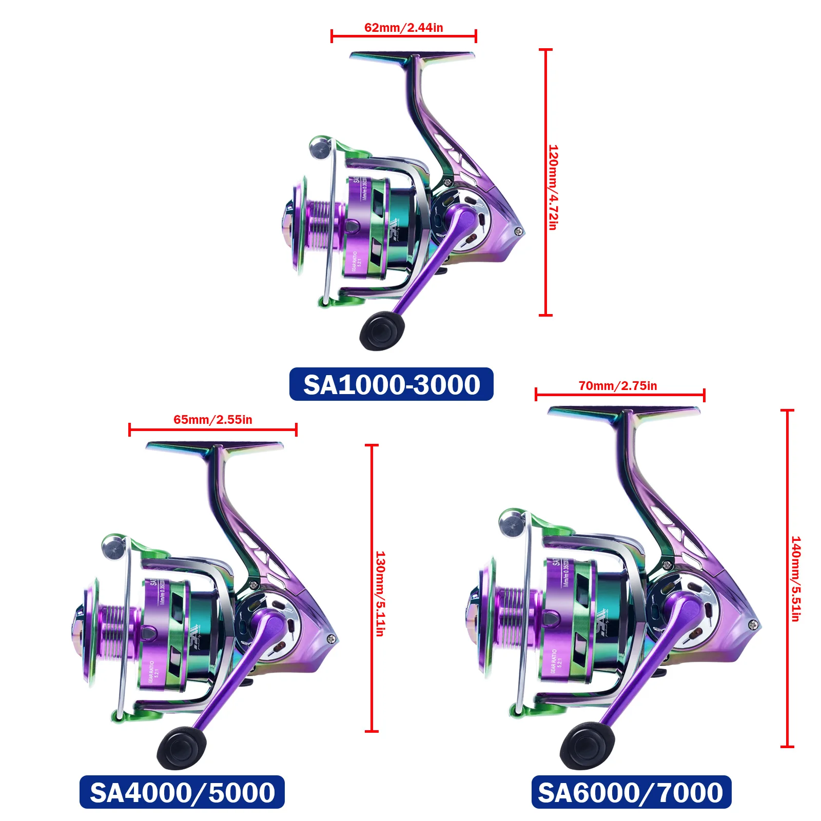 SAMOLLA, recién llegado, carrete de pesca giratorio de agua salada 1000-7000 6 + 1BB 5,2: 1, arrastre máximo de 10KG, carretes a prueba de agua