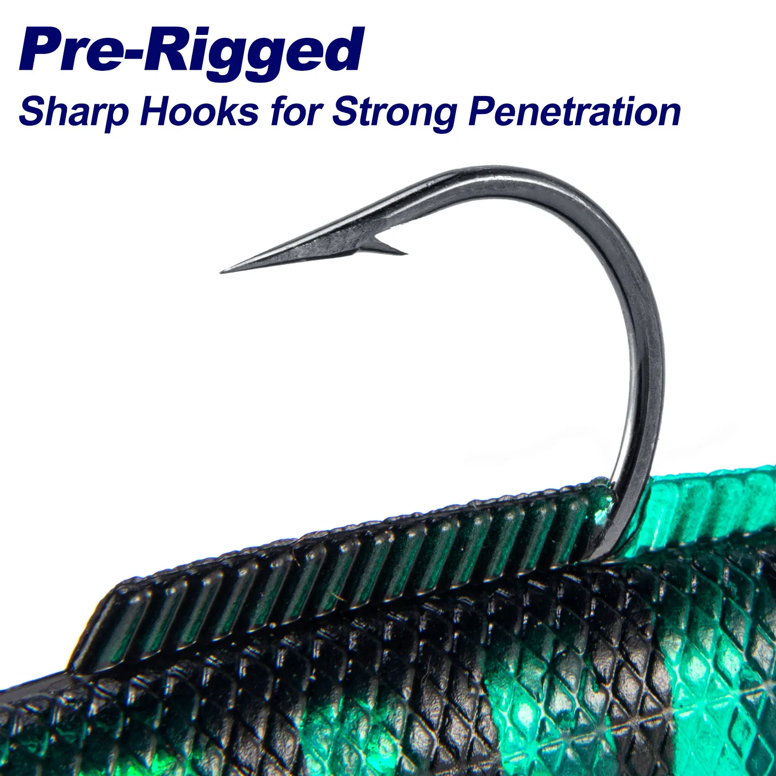 1. Cuerpos de silicona suave con colas de paleta profundas, crean una excelente acción corporal y vibración en el agua