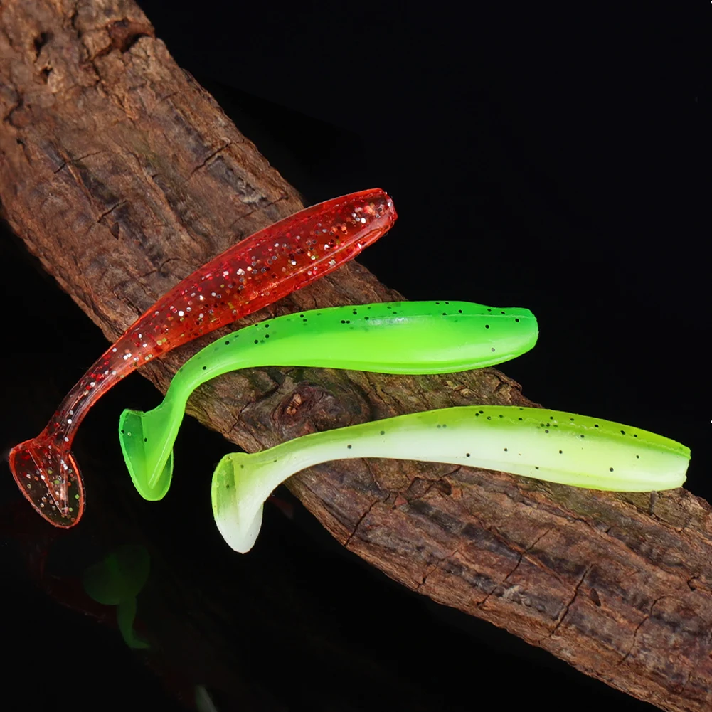 SANLIKE, 10 Uds., 7cm, 2g, cola en T, juego de Señuelos de Pesca de plástico suave, Swimbait de silicona para lubina, pez negro, cabeza de serpiente en agua dulce y salada