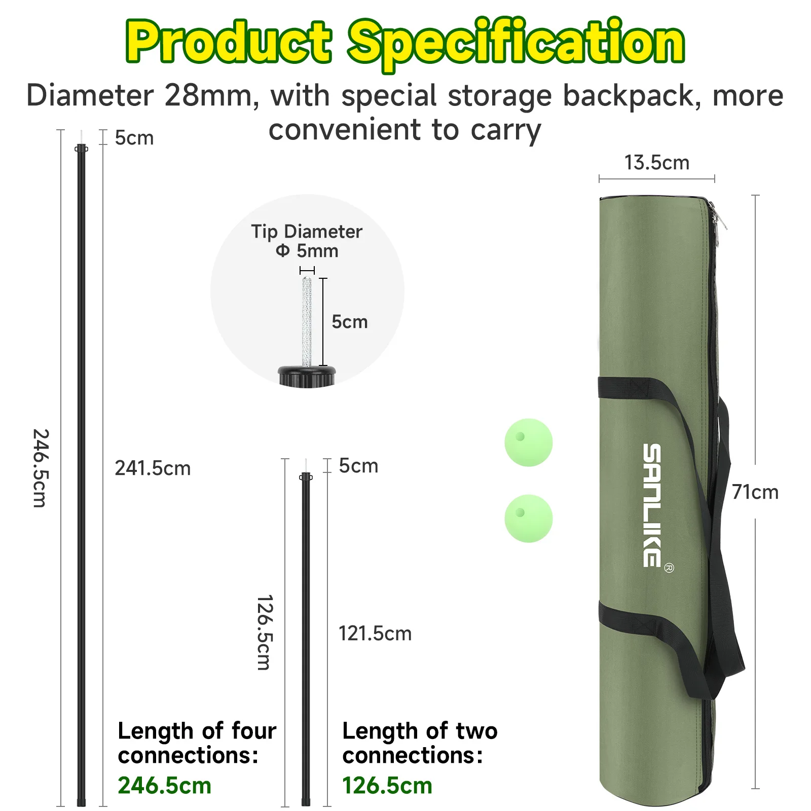 SANLIKE 2 juegos de postes estables de aluminio de 240cm para tienda de campaña, postes de lona, postes de tienda de campaña, conexión de cuentas de vidrio con bolsa de almacenamiento