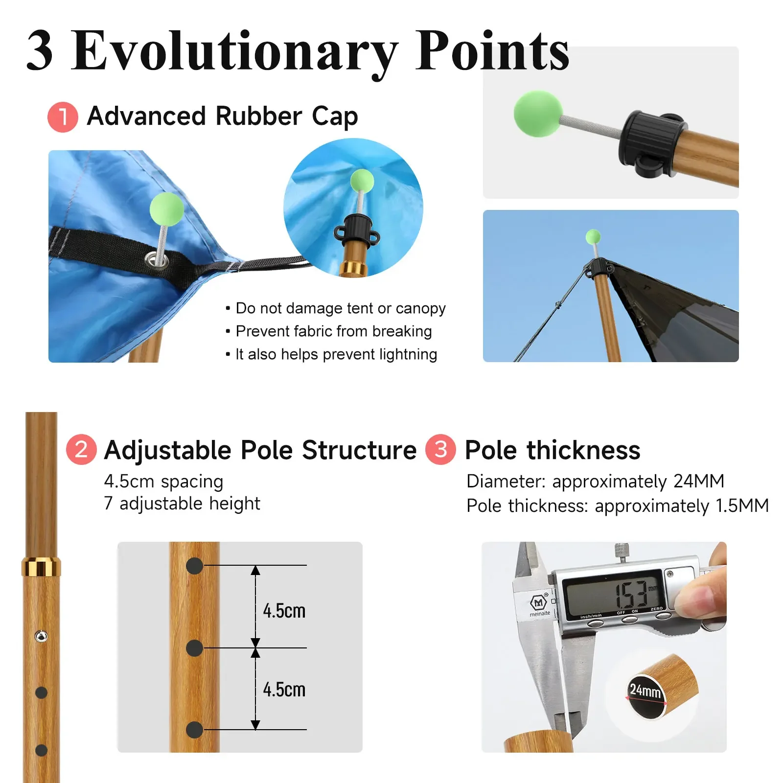 SANLIKE, 2 uds., postes de tienda muwen, accesorios para acampar al aire libre, postes ajustables, accesorios para tienda de campaña, postes de soporte para tienda