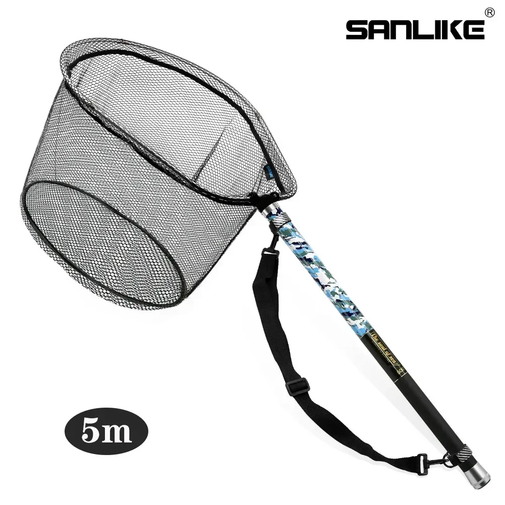 SANLIKE 5m 6m red de bolas plegable telescópica ajustable patrón de bolas red de pesca para agua dulce red de aterrizaje de agua de mar