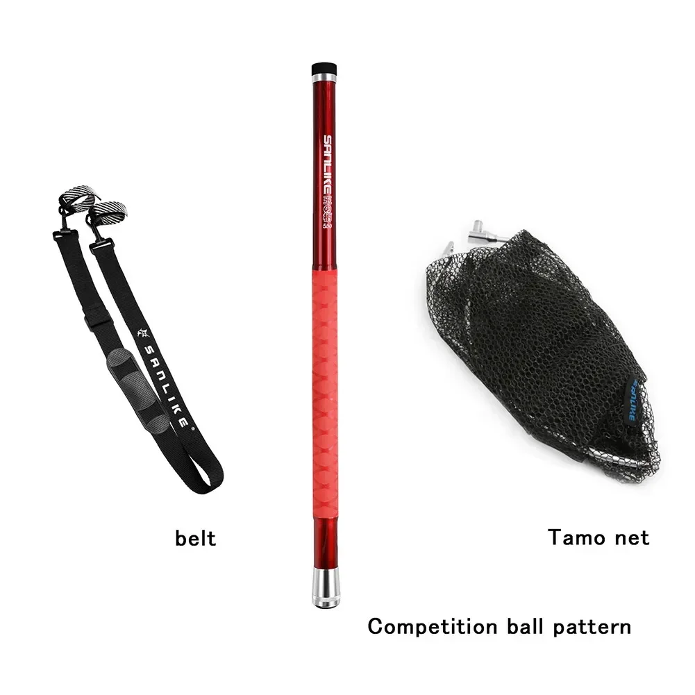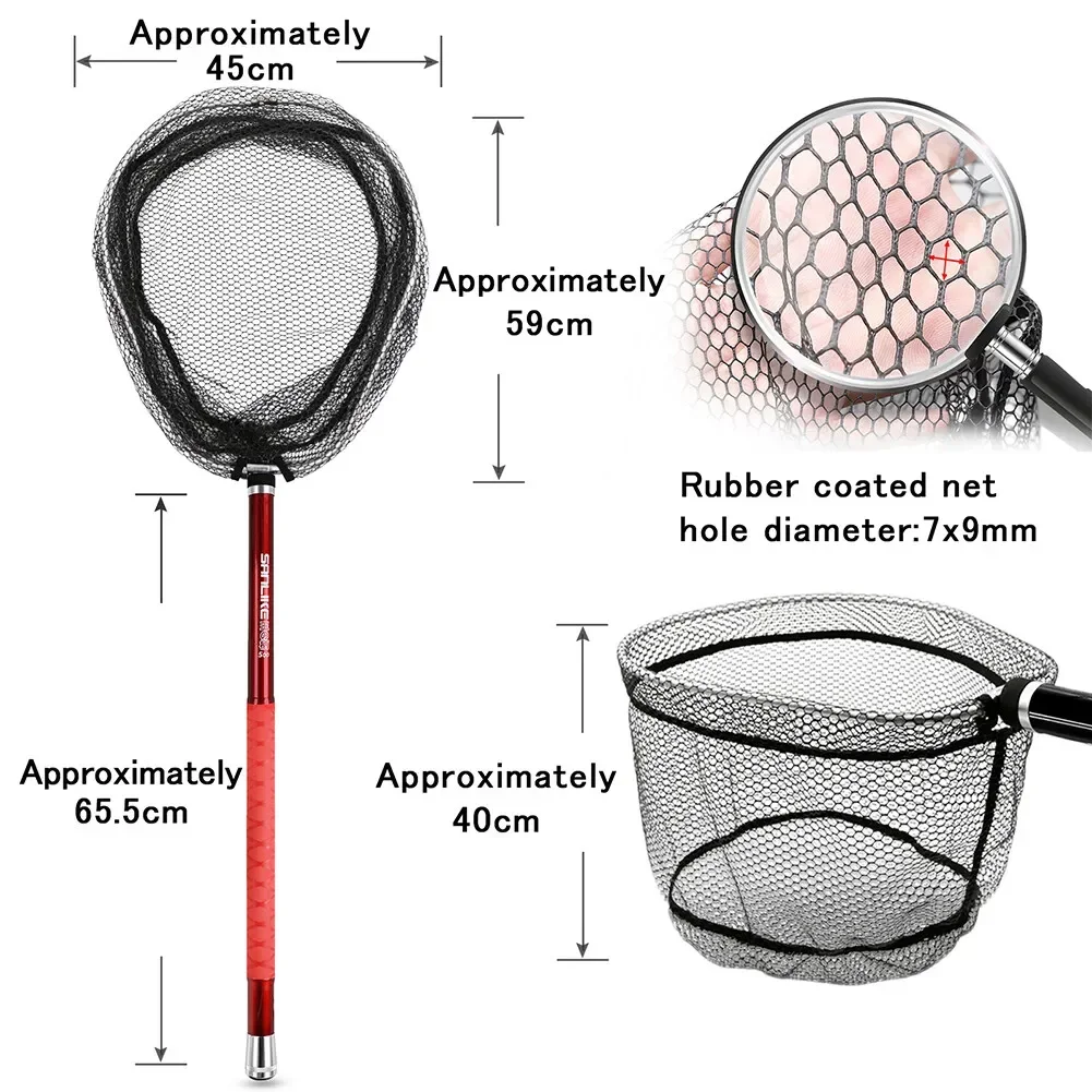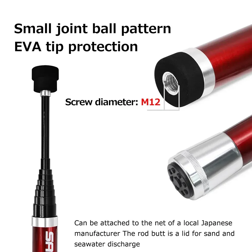 SANLIKE 5M poste rojo de fibra de carbono portátil telescópico de 9 niveles red de piso red de goma 4 marco plegable conjunto de caña de pescar de red de rastrillo ovalado