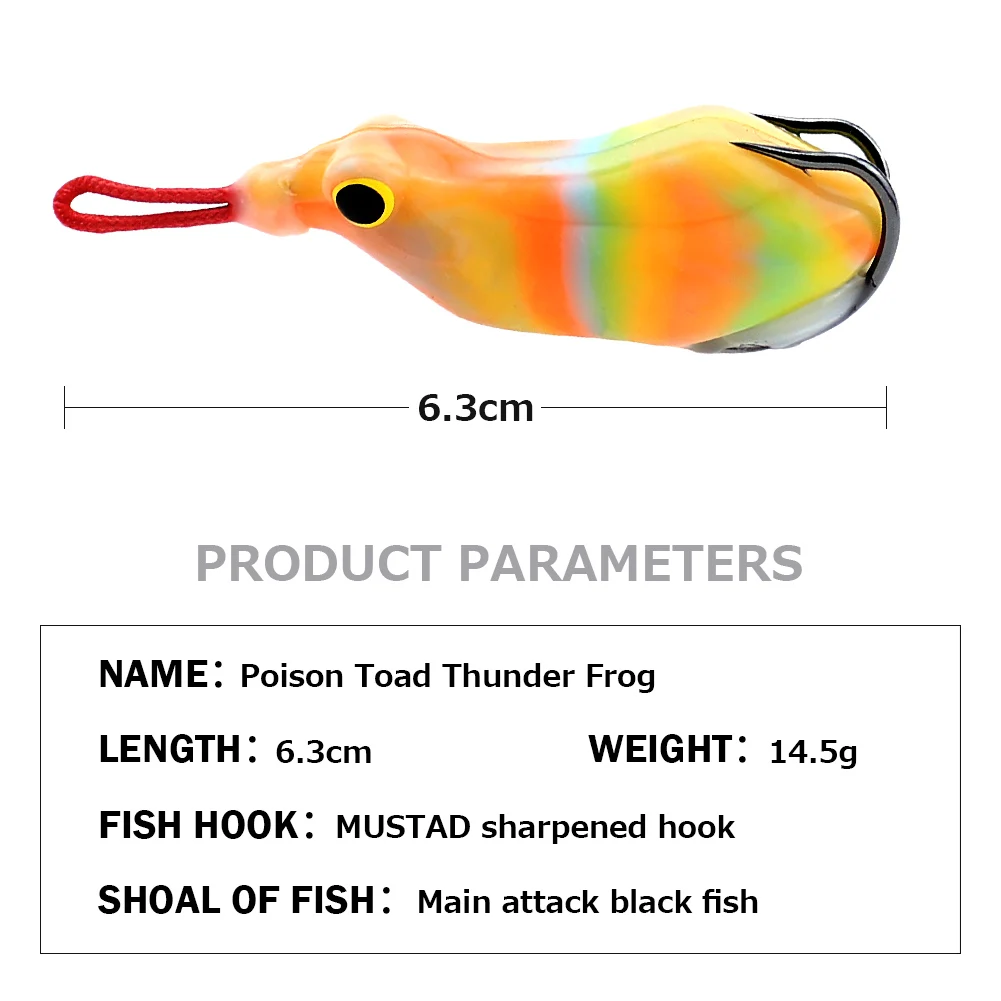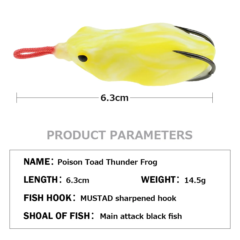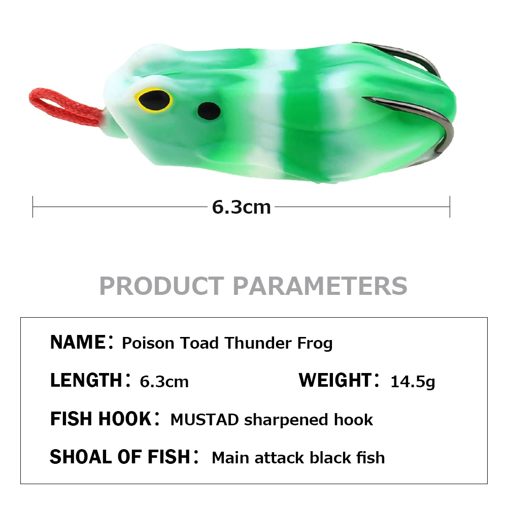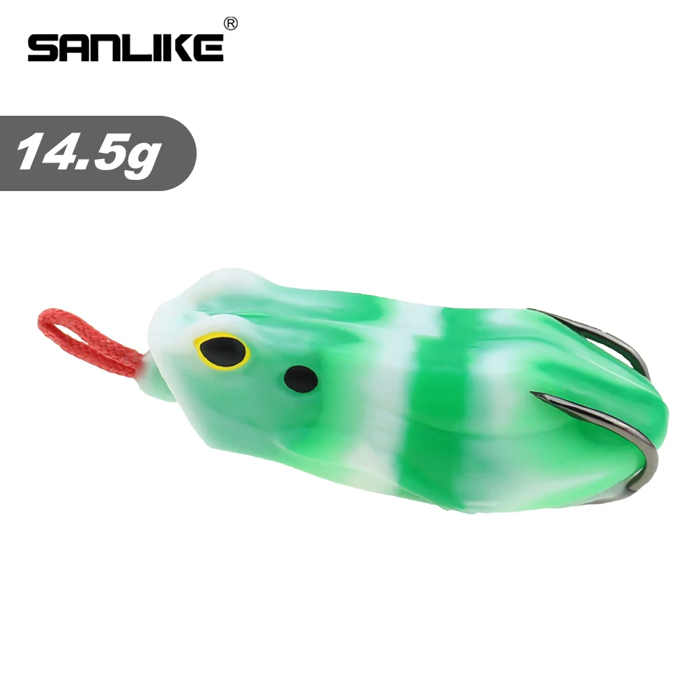 SANLIKE, 6.3cm, 14,5g, cebo suave modificado de rana trueno con ranura, anzuelos dobles, cebo falso de pescado negro de largo alcance, aparejos de pesca
