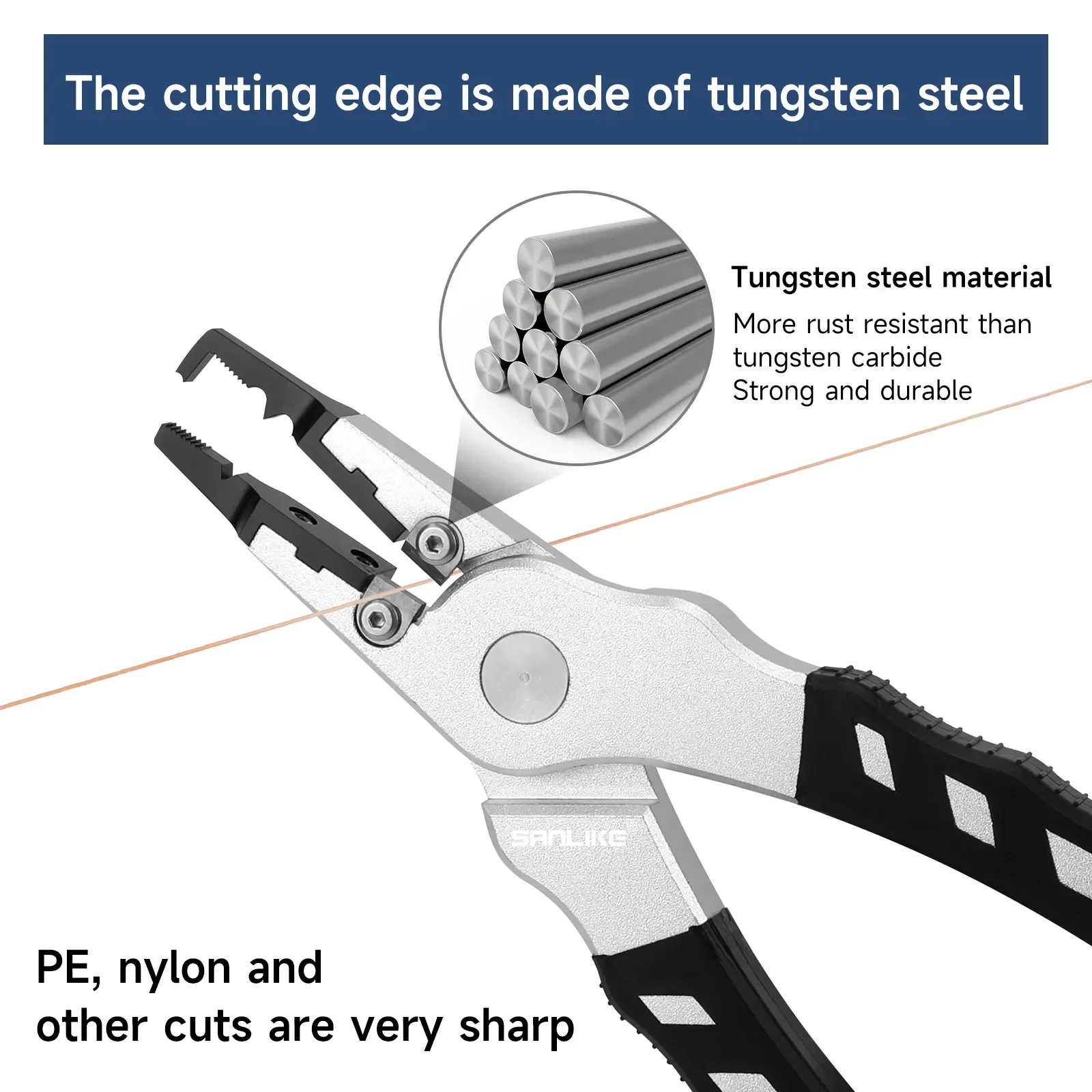 Pinza de pesca SANLIKE con báscula y alicates de agarre de pesca, alicates de anillo dividido, juego de aparejos de pesca multifuncionales